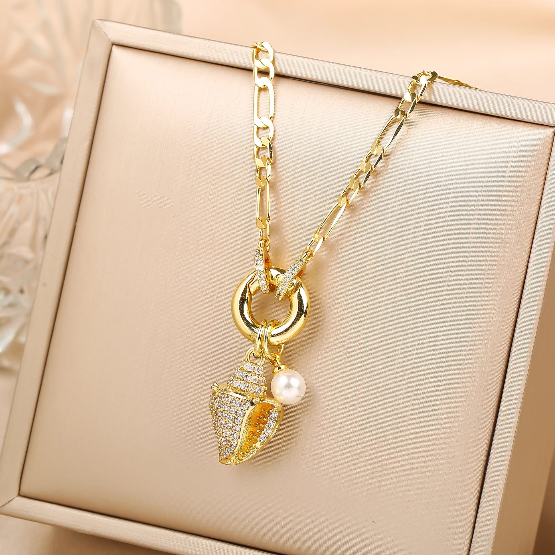 New Creative Shiny Zirconia Conch Flower Wings Theme Pendant Necklace New Fashion Woman Female Vacation Jewelry Accessories