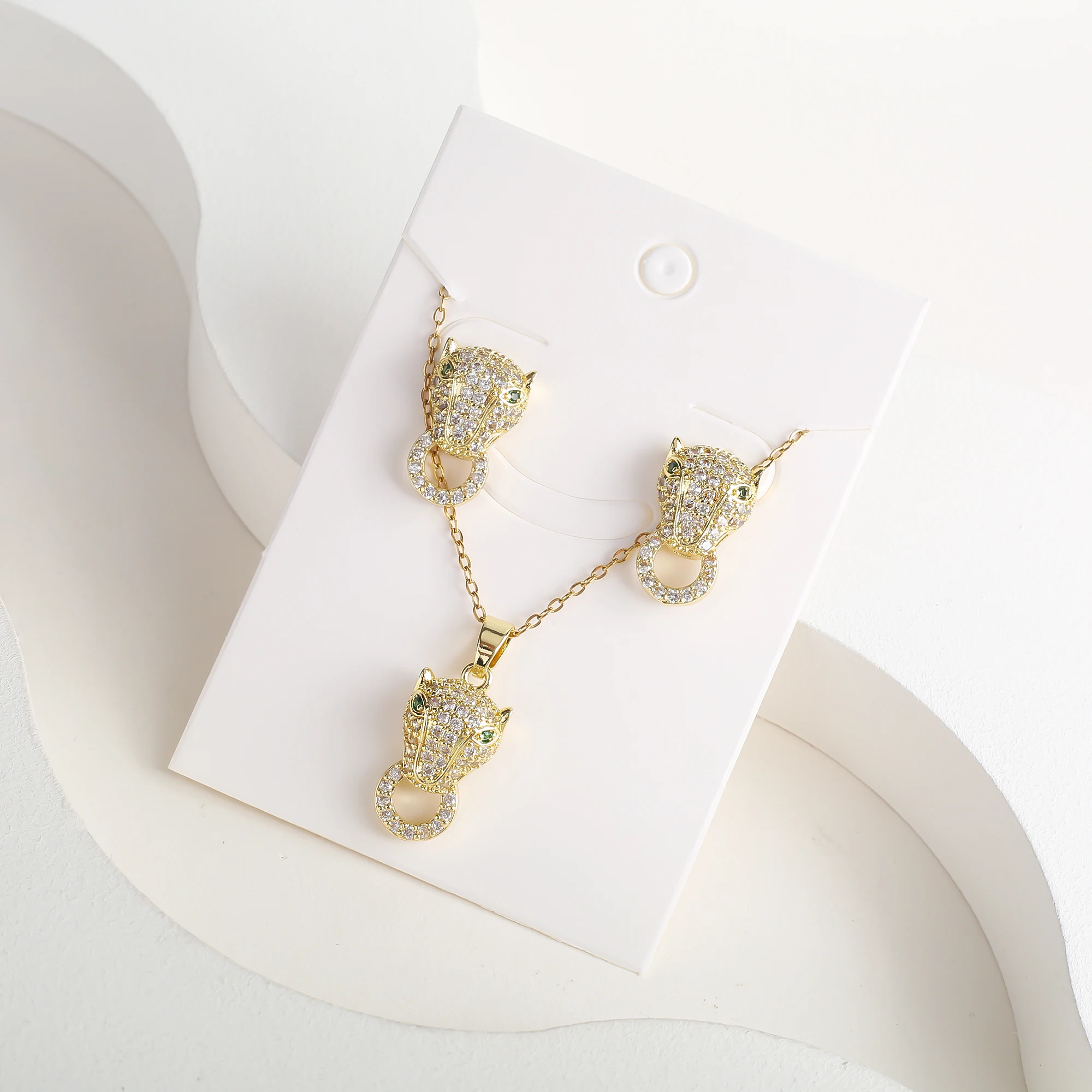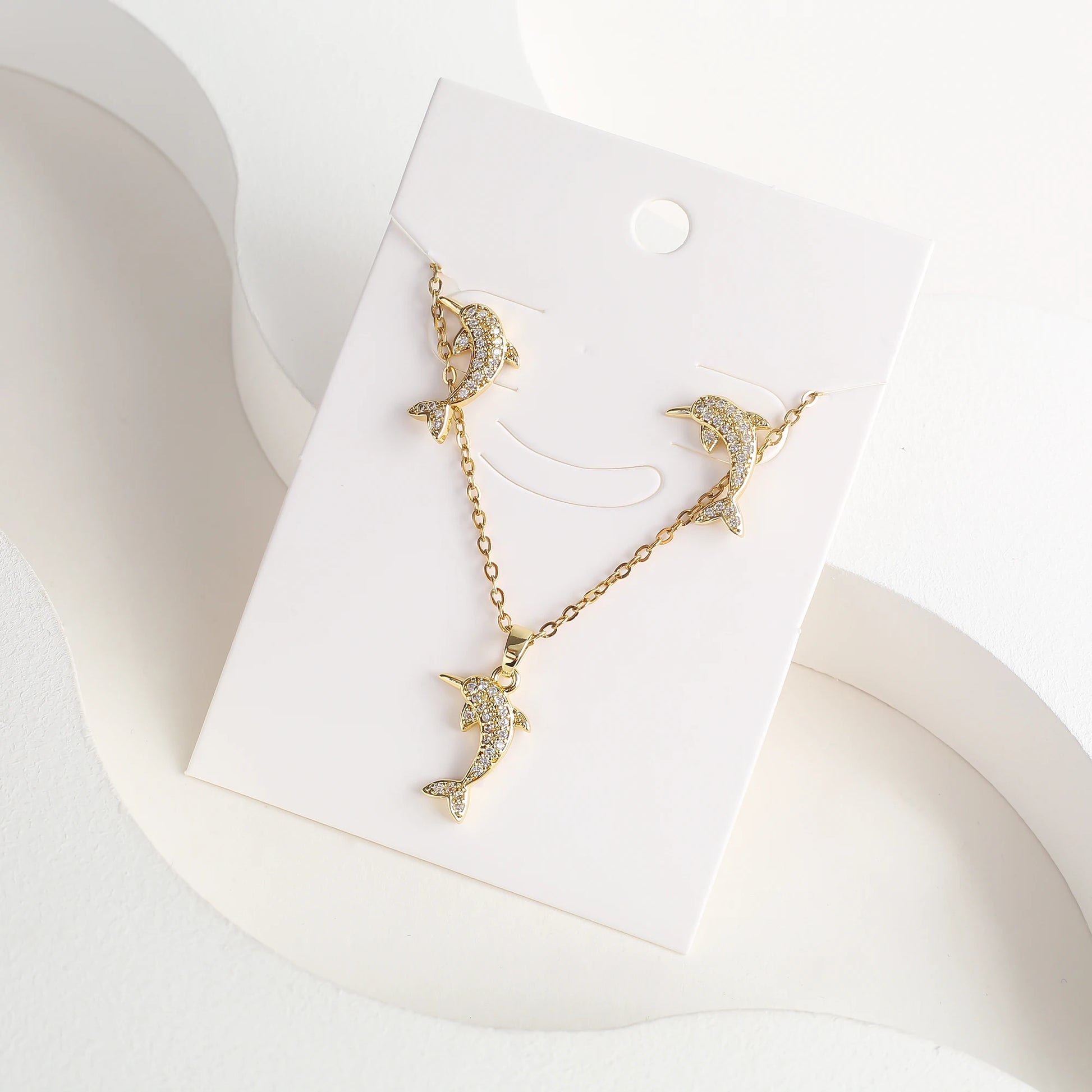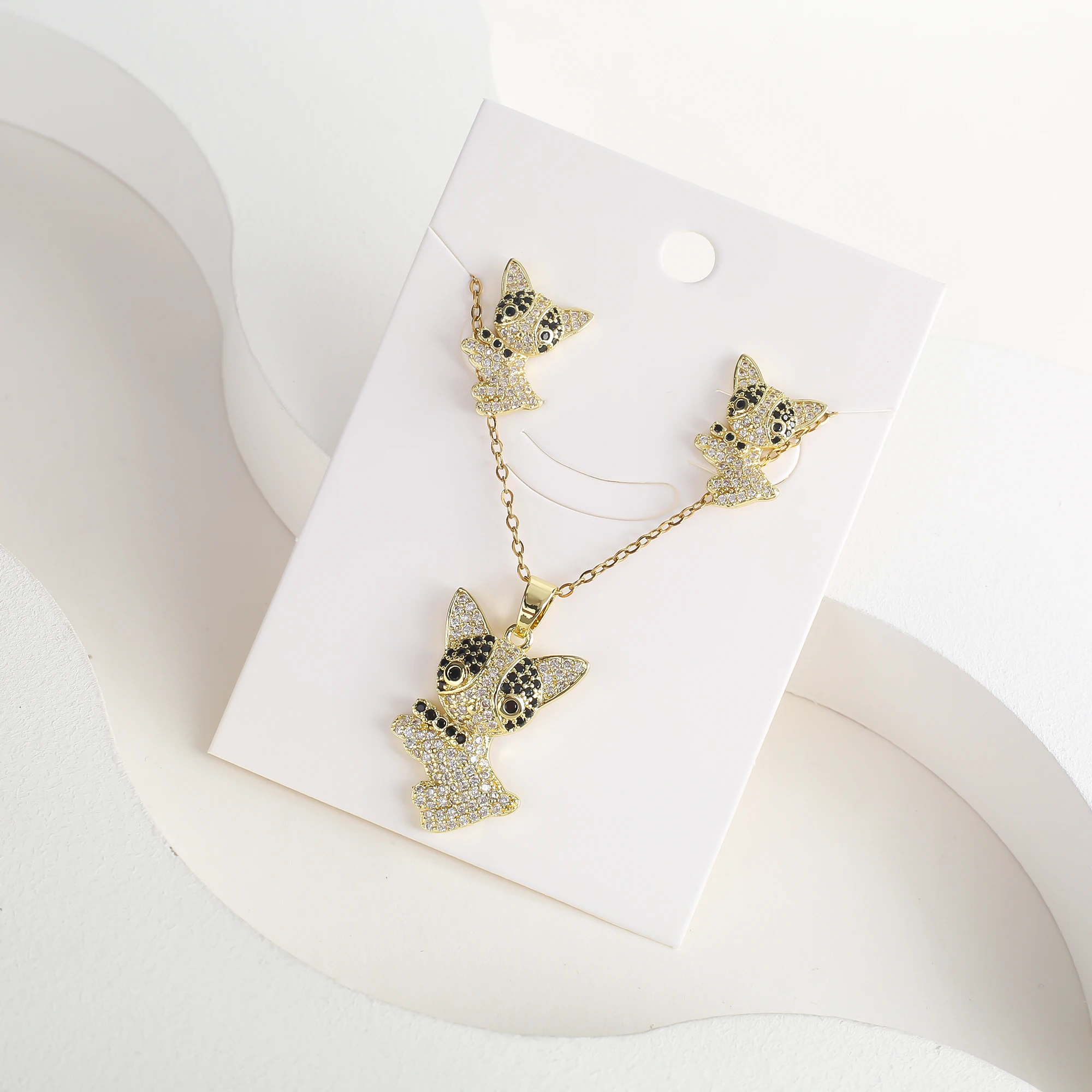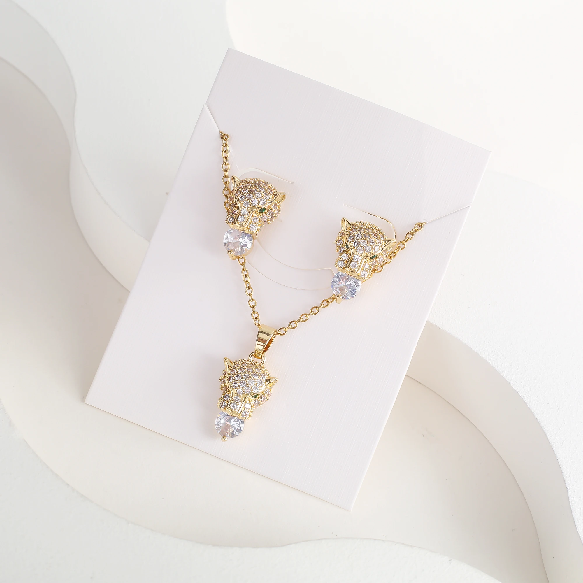 New Cute Zirconia Animal Bear Dolphin Leopard Dog Pendant Necklace Set Girls Anti-Allergy Earrings Holiday Party Gift Wholesale