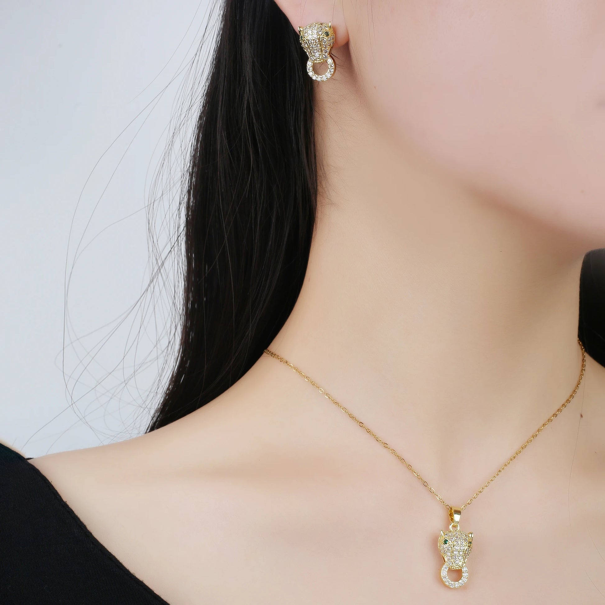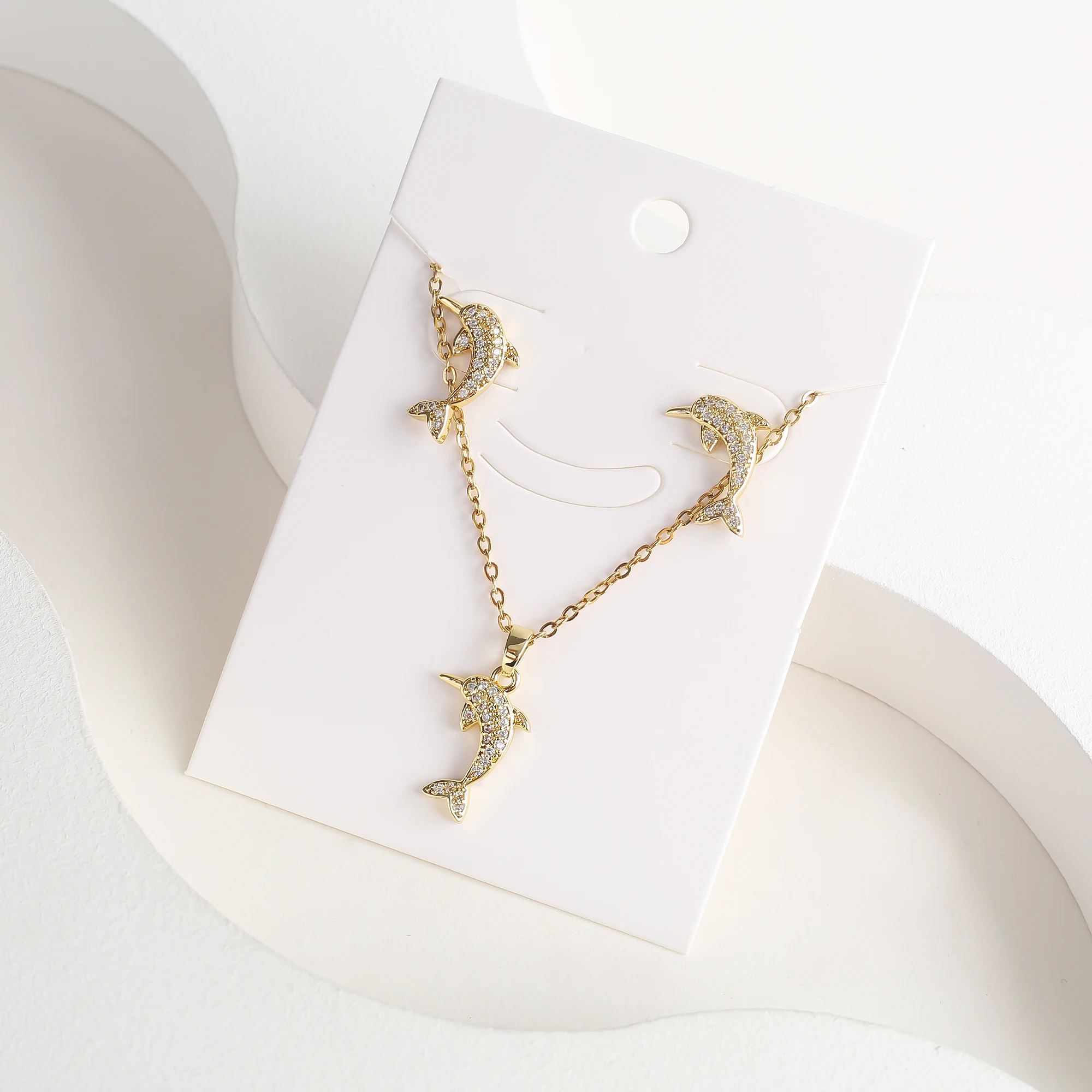 Name: New Cute Zirconia Animal Bear Dolphin Leopard Dog Pendant Necklace Set Girls Anti-Allergy Earrings Holiday Party Gift Wholesale