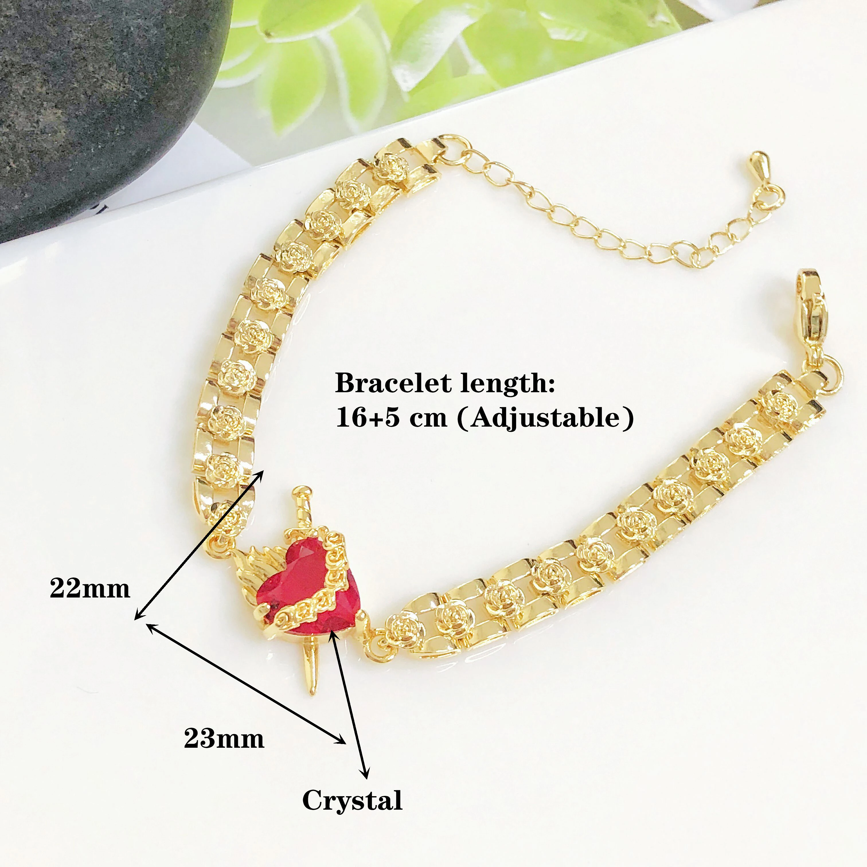 Name: New Fashion Heart-Shaped Crystal Rose Flower Chain Gold-Plated Bracelet for Women Female New Trend Party Jewelry, Birthday Gift