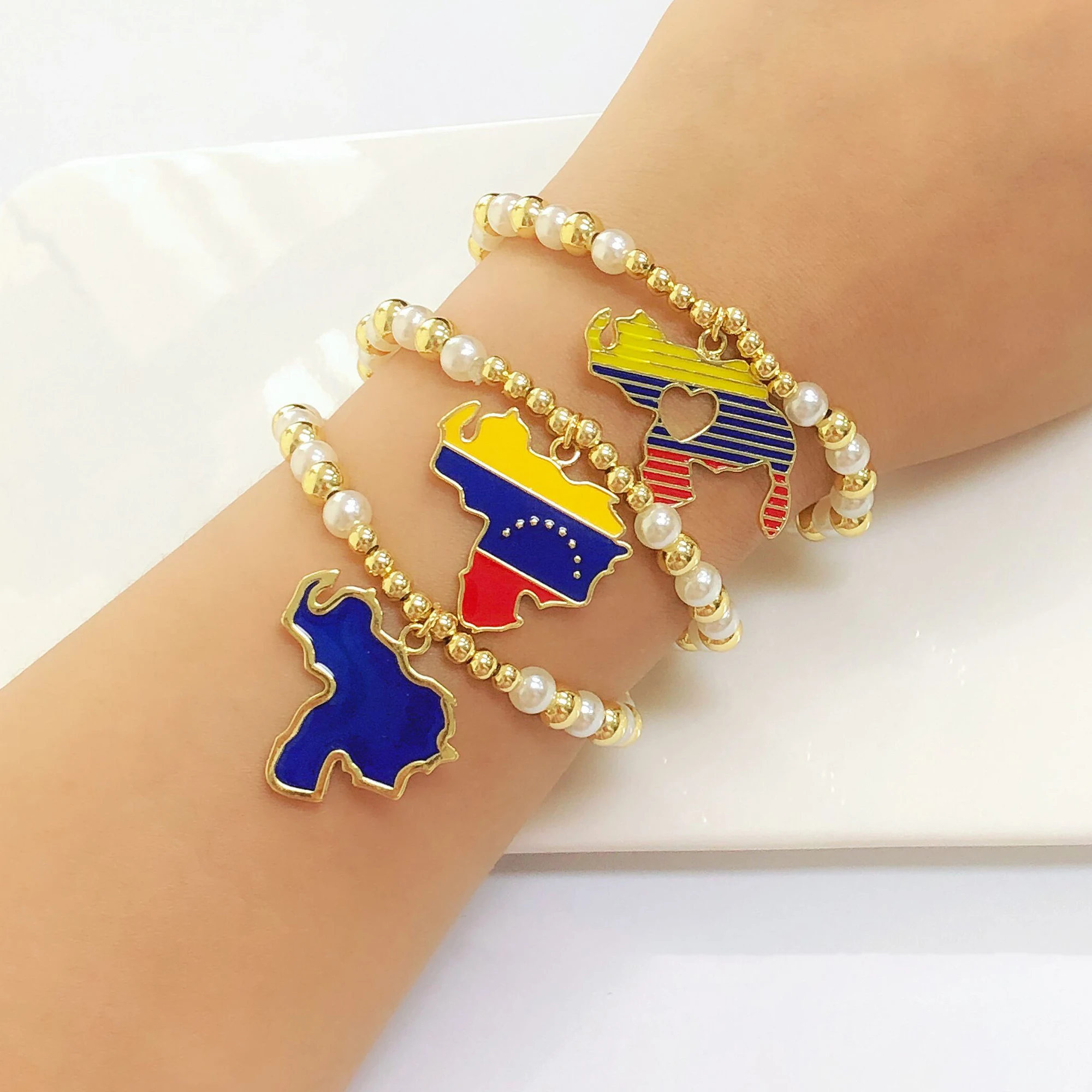 New Fashion Venezuelan Mexican Dominican Map Pendant Woven Pearl Chain Bracelet for Men Women Party Jewelry National Day Gift