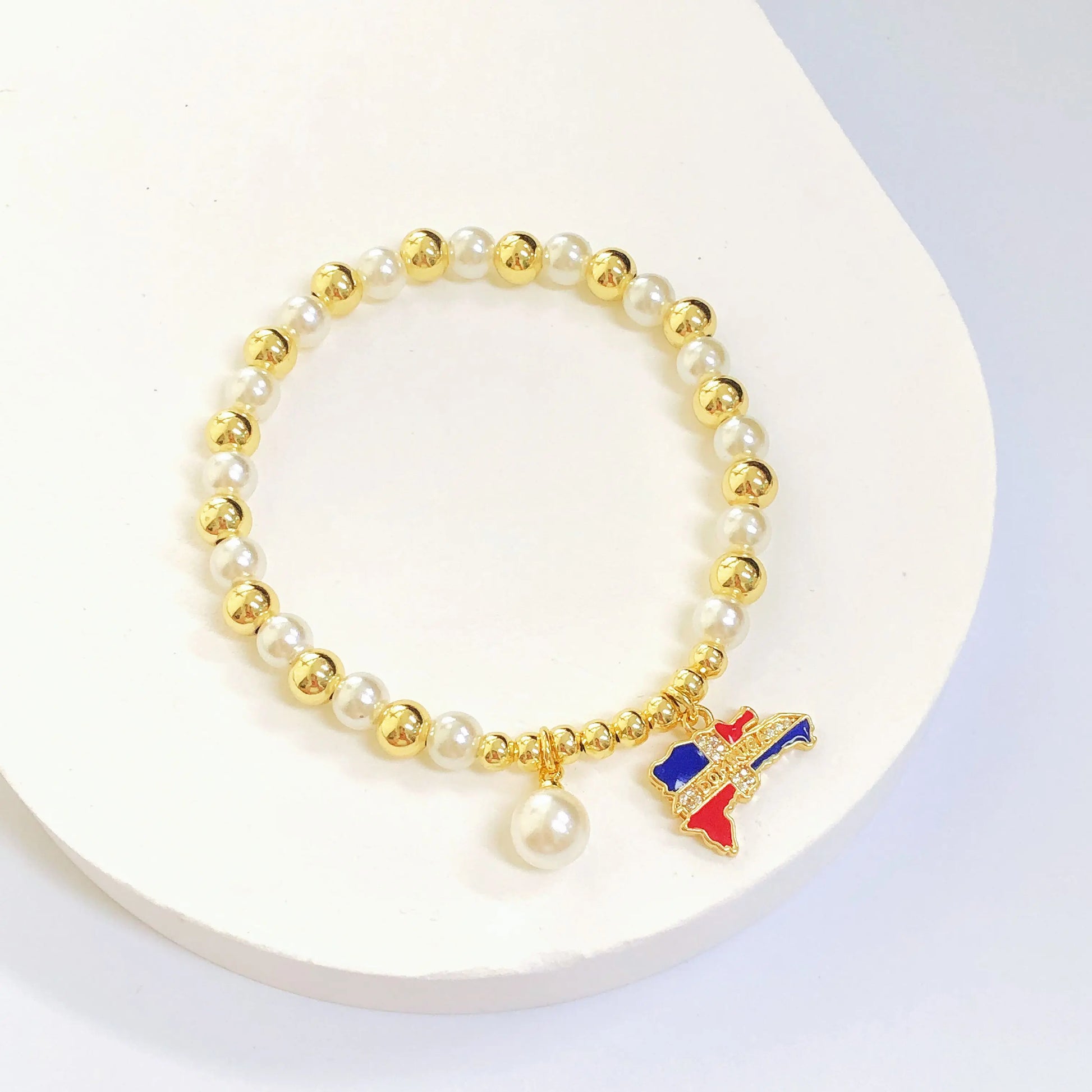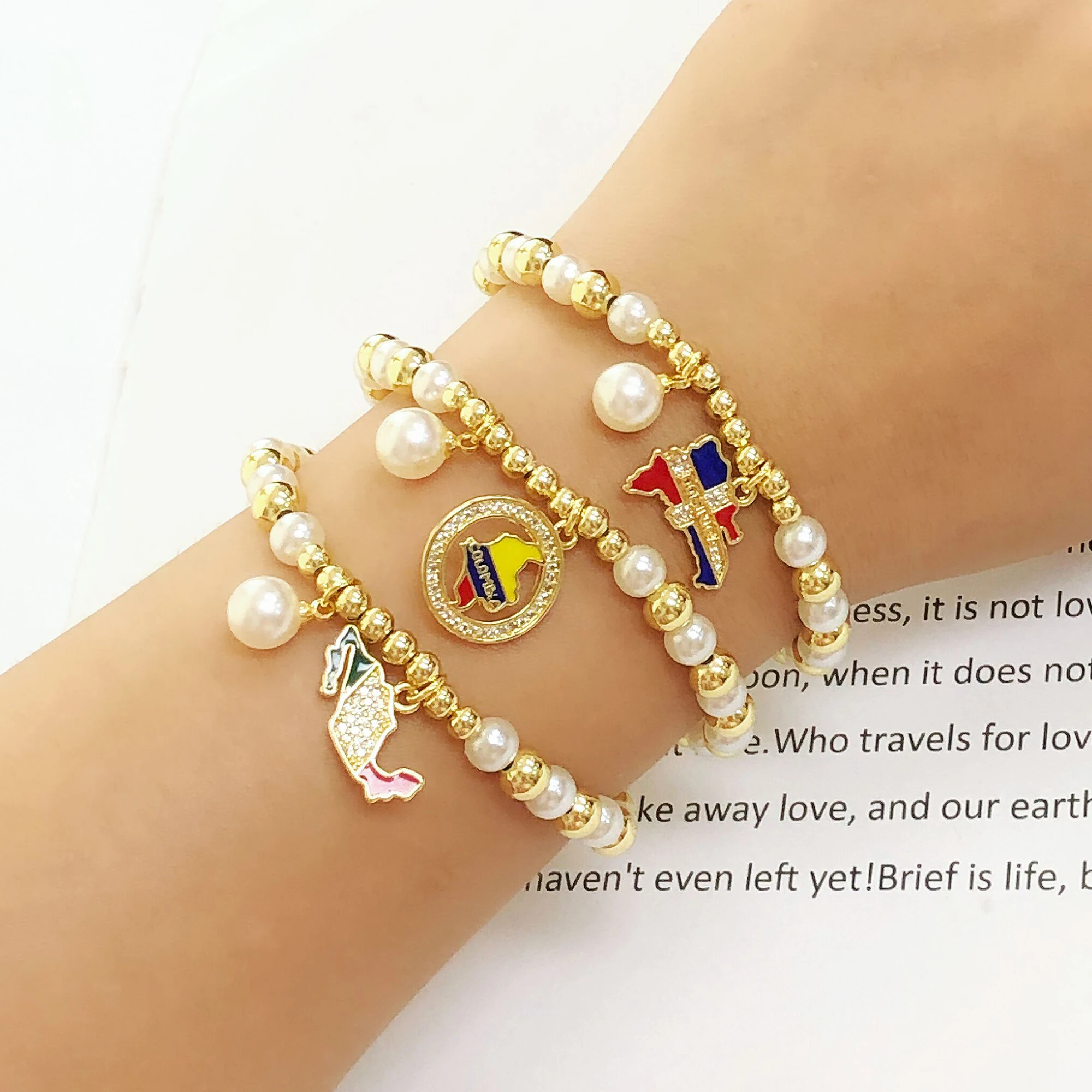 Name: New Fashion Venezuelan Mexican Dominican Map Pendant Woven Pearl Chain Bracelet for Men Women Party Jewelry National Day Gift