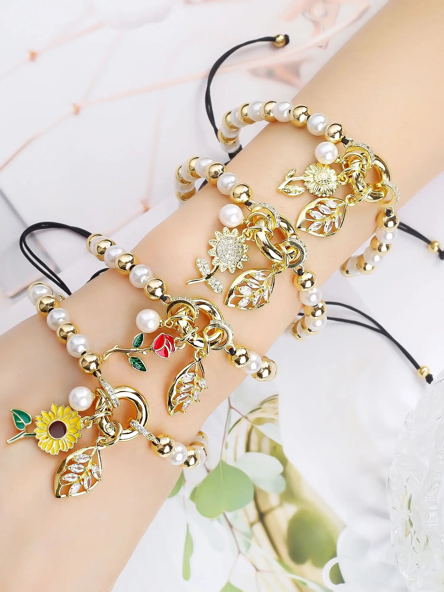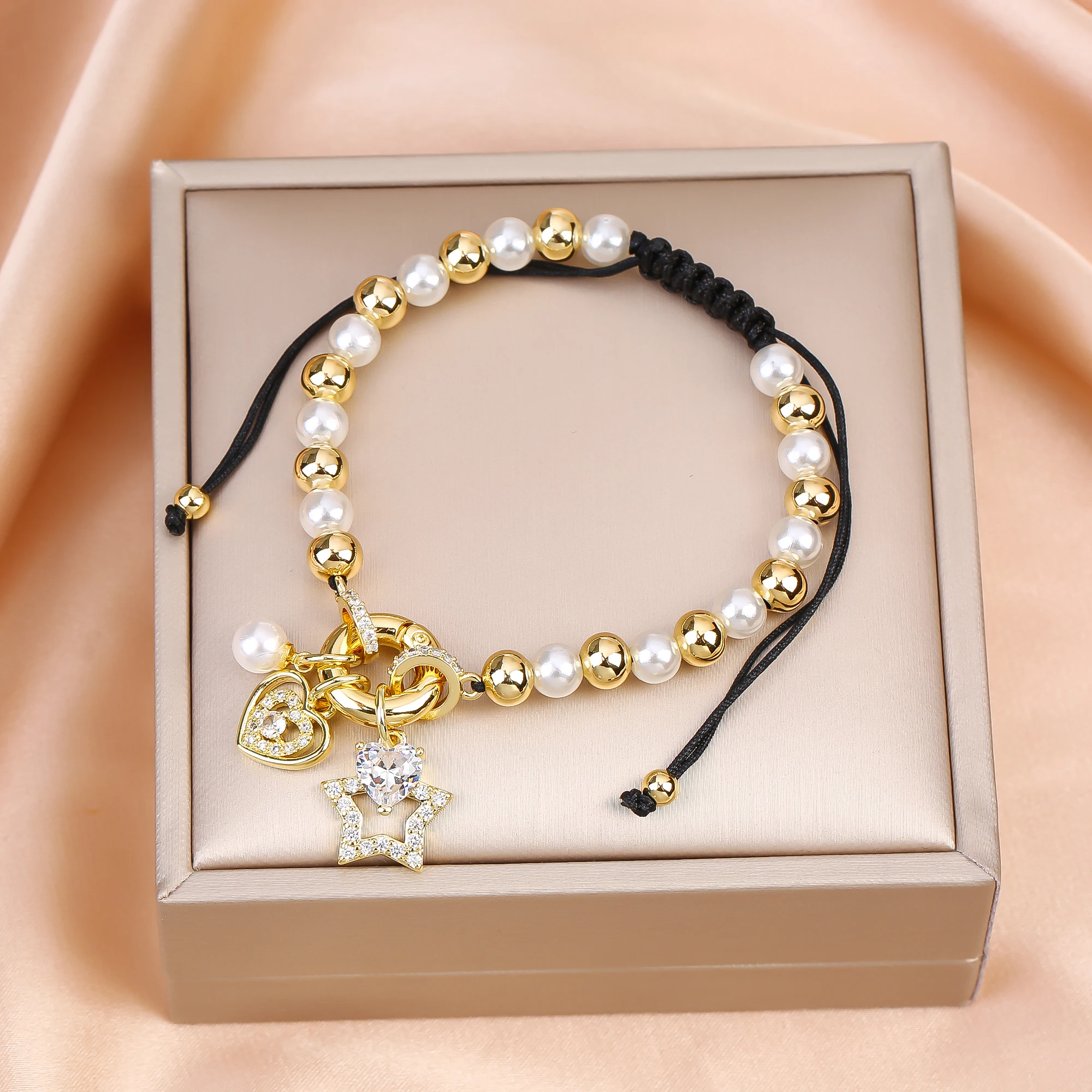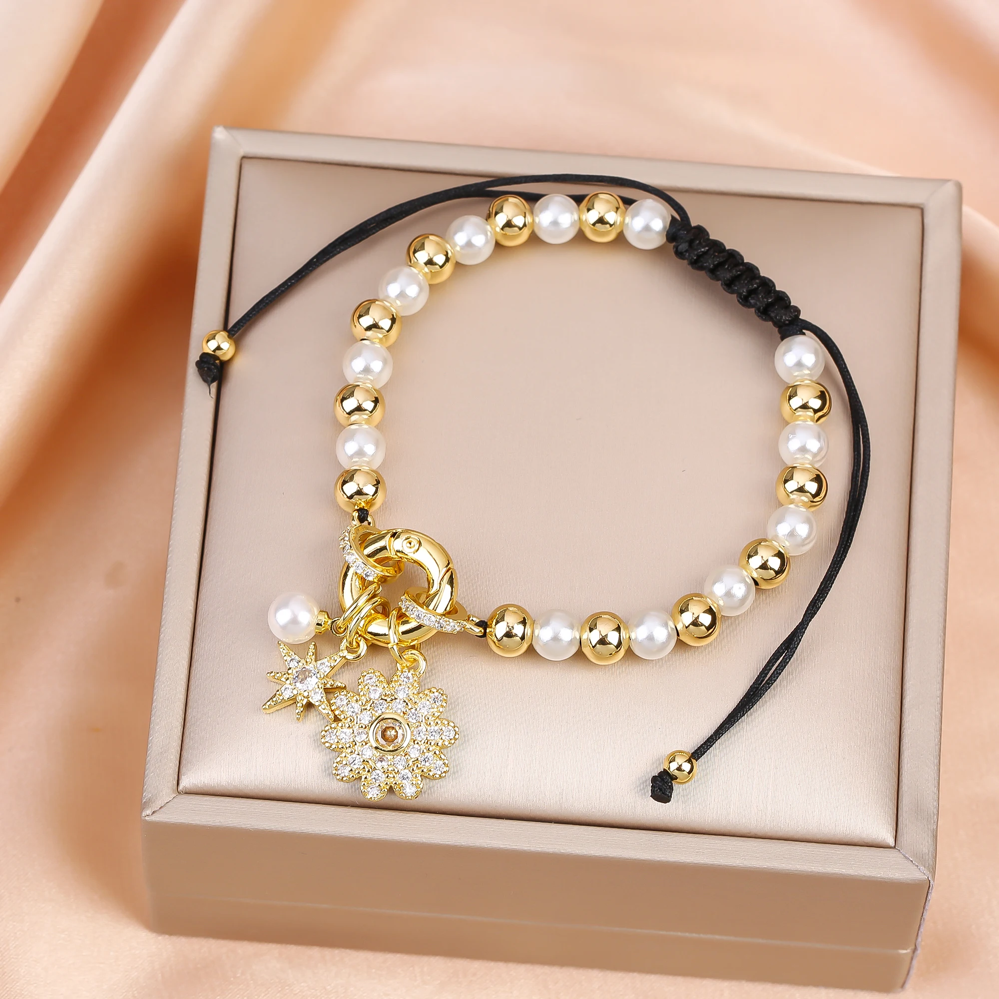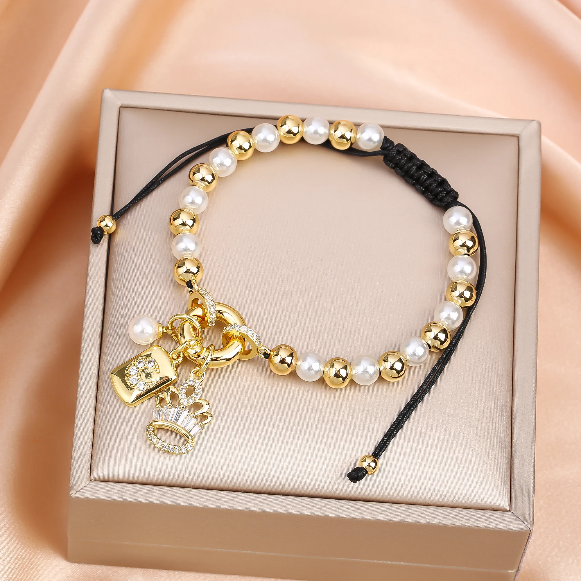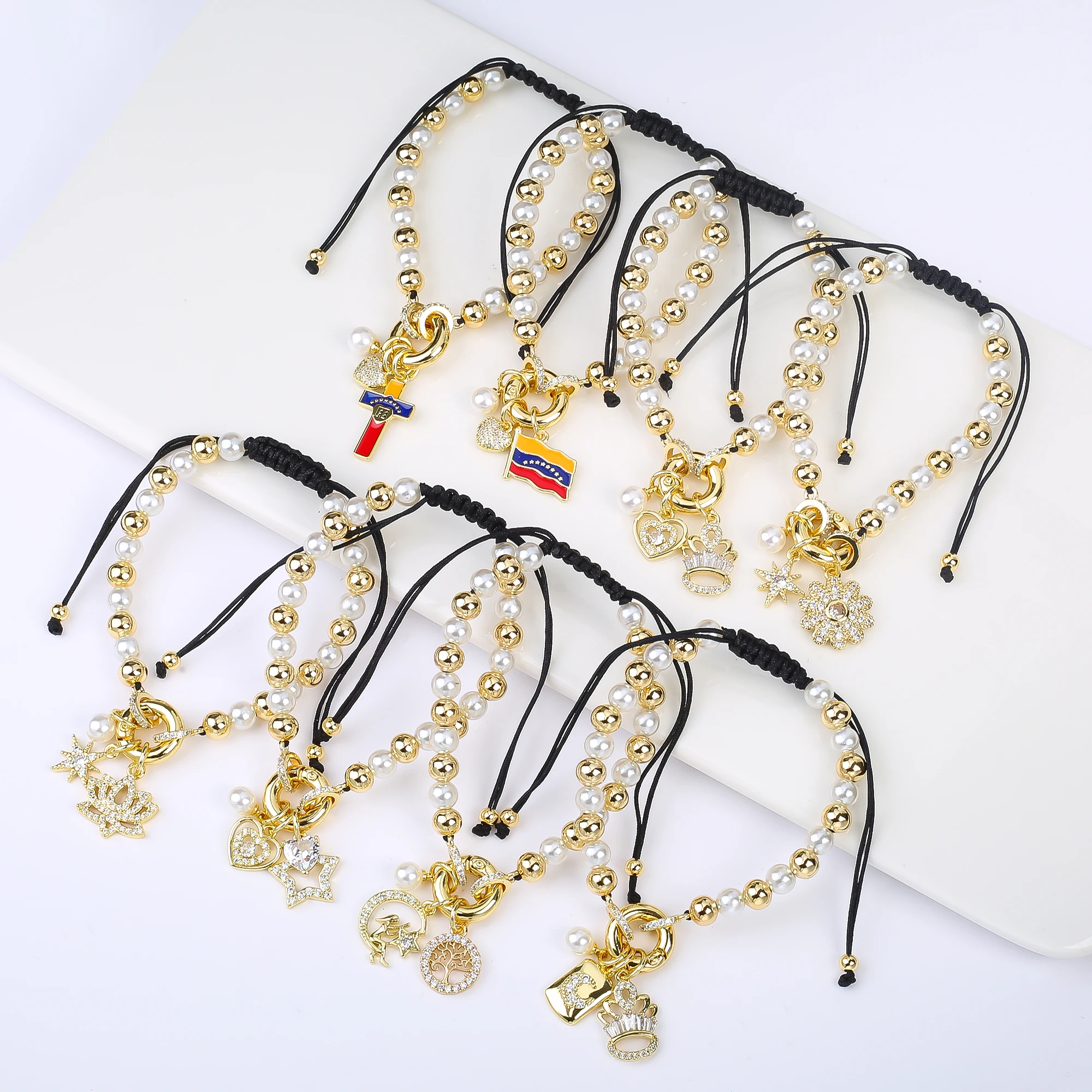 Name: New Trend Crown Star Theme Zircon Bracelet Venezuela Flag Cross Pearl Chain Bracelet Fashion for Woman Girl Daily Wear Jewelry