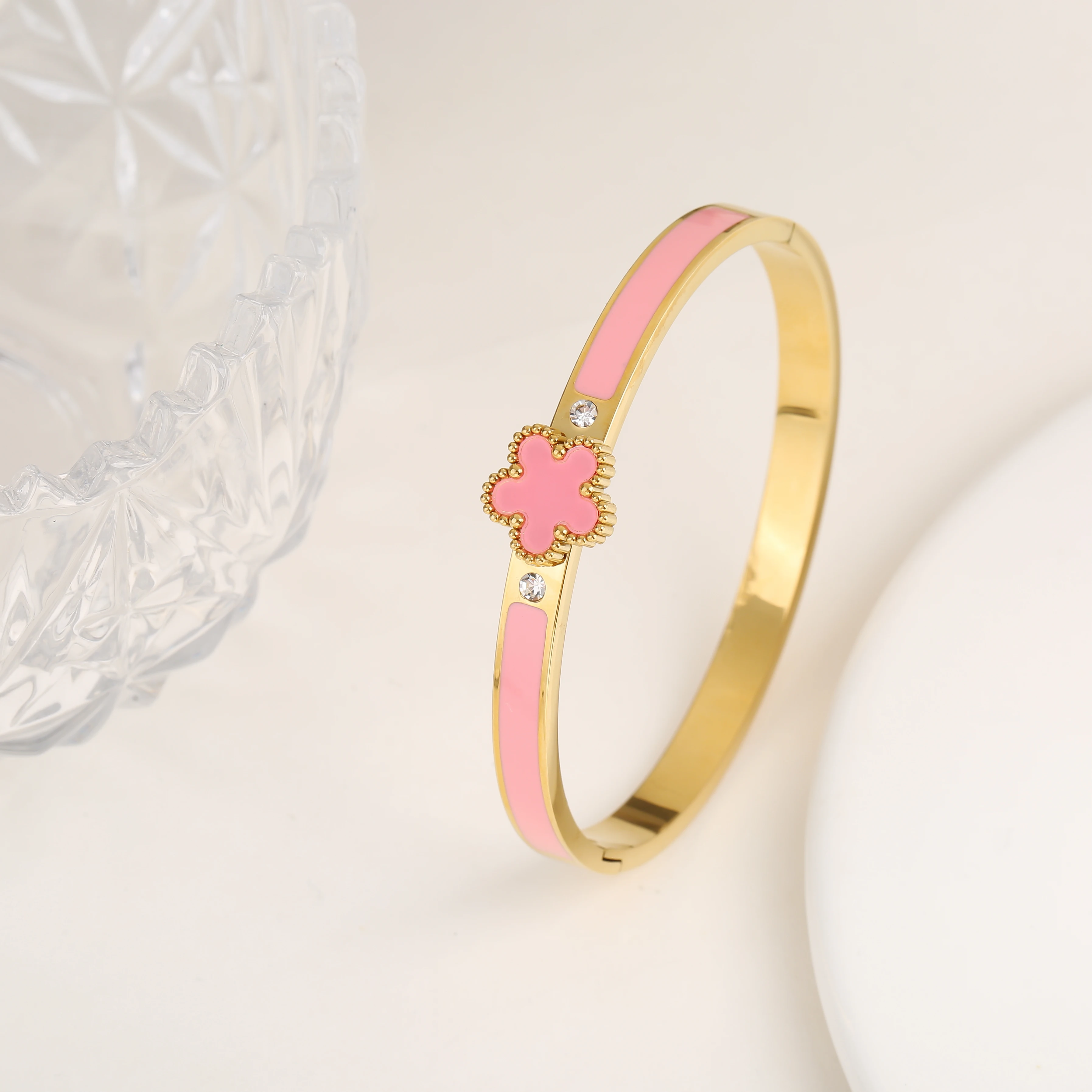 Name: New Trend Stainless Steel Plant Five-Leaf Flower Open Bangle Simple For Woman Luxury Party Jewelry Fine Gift Accessories Clover