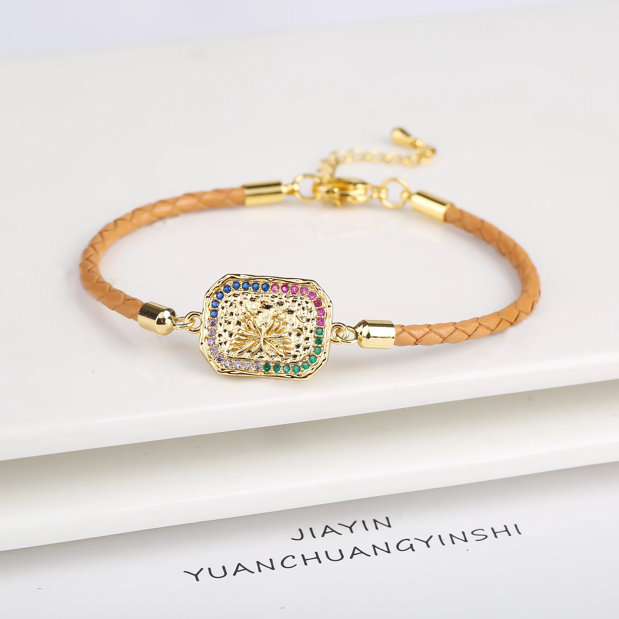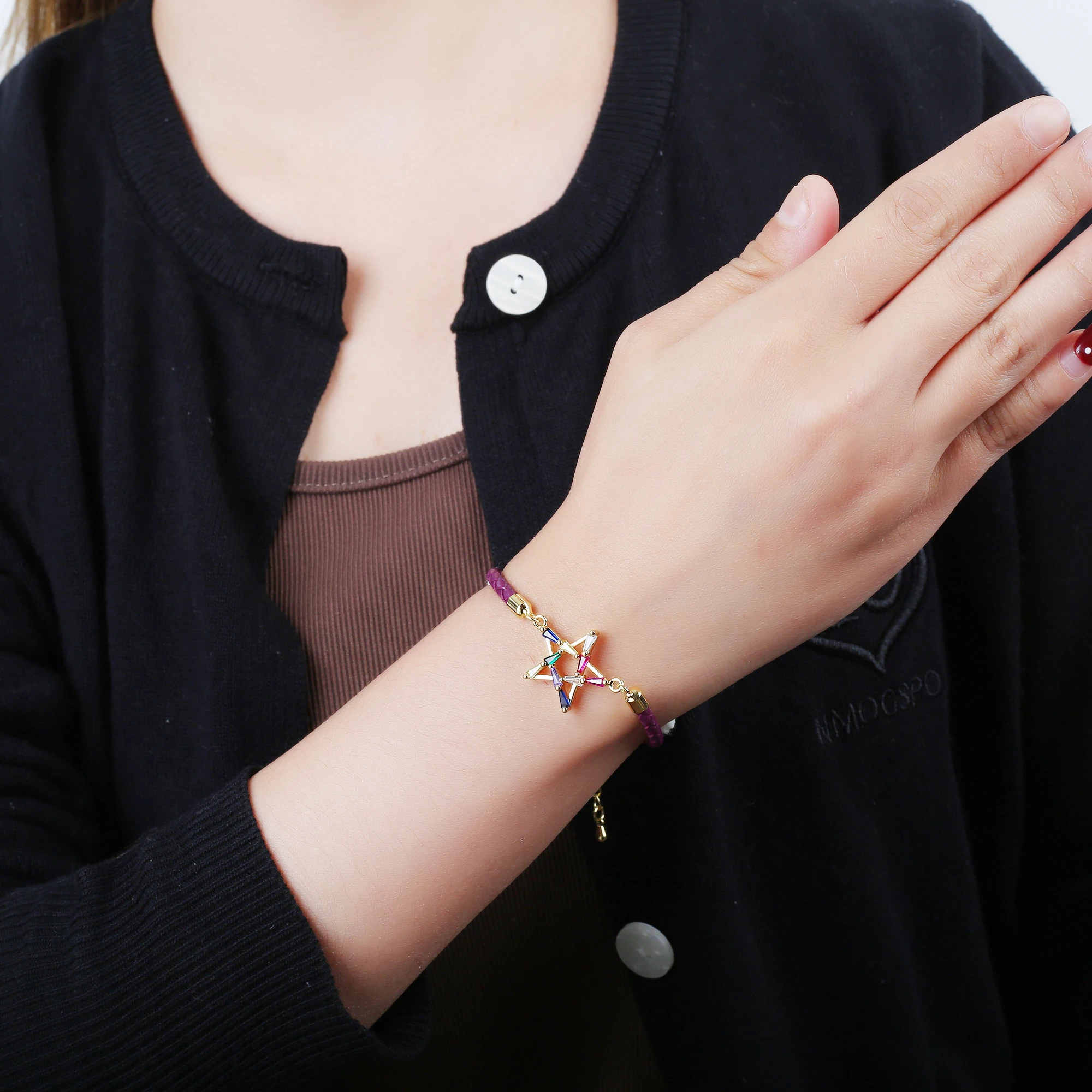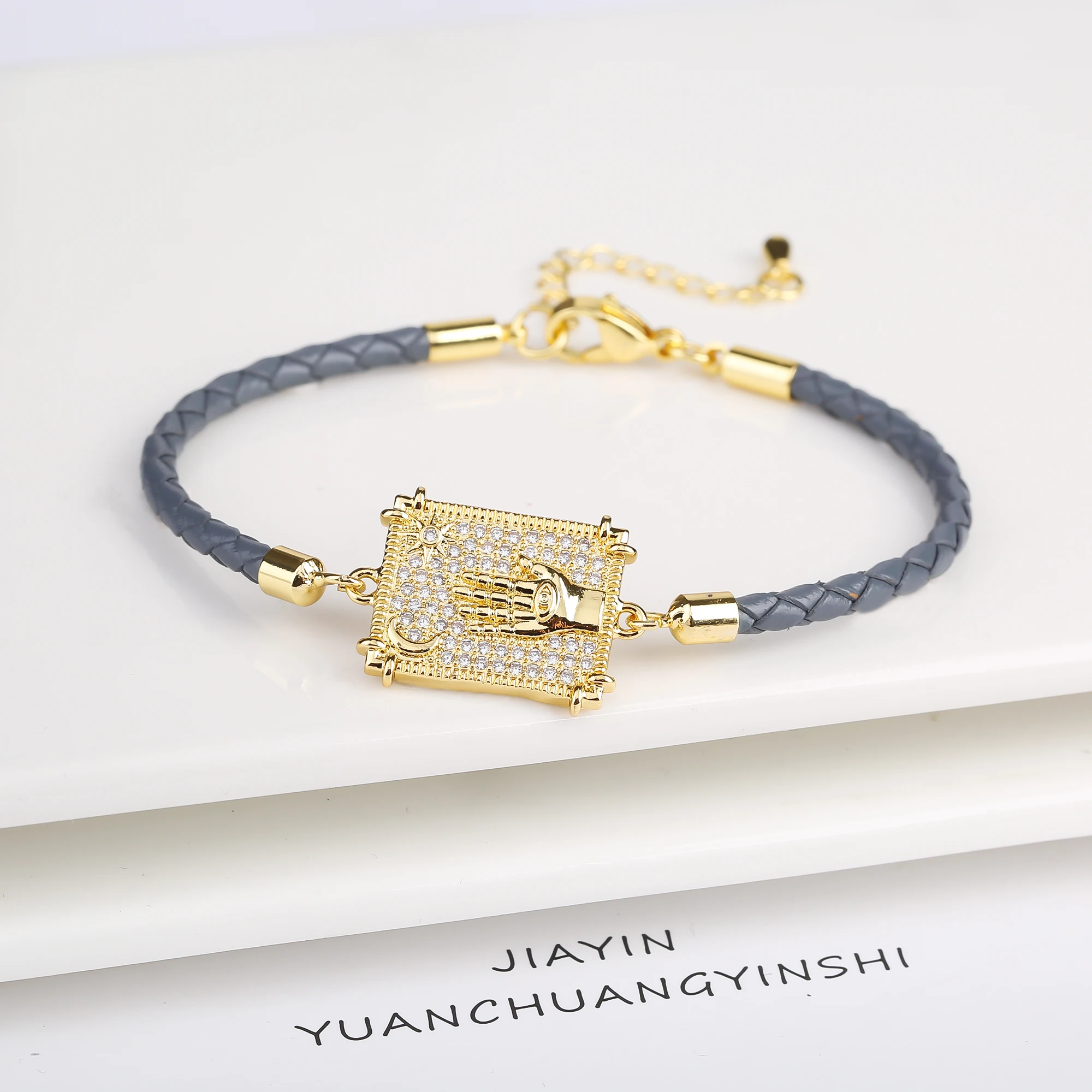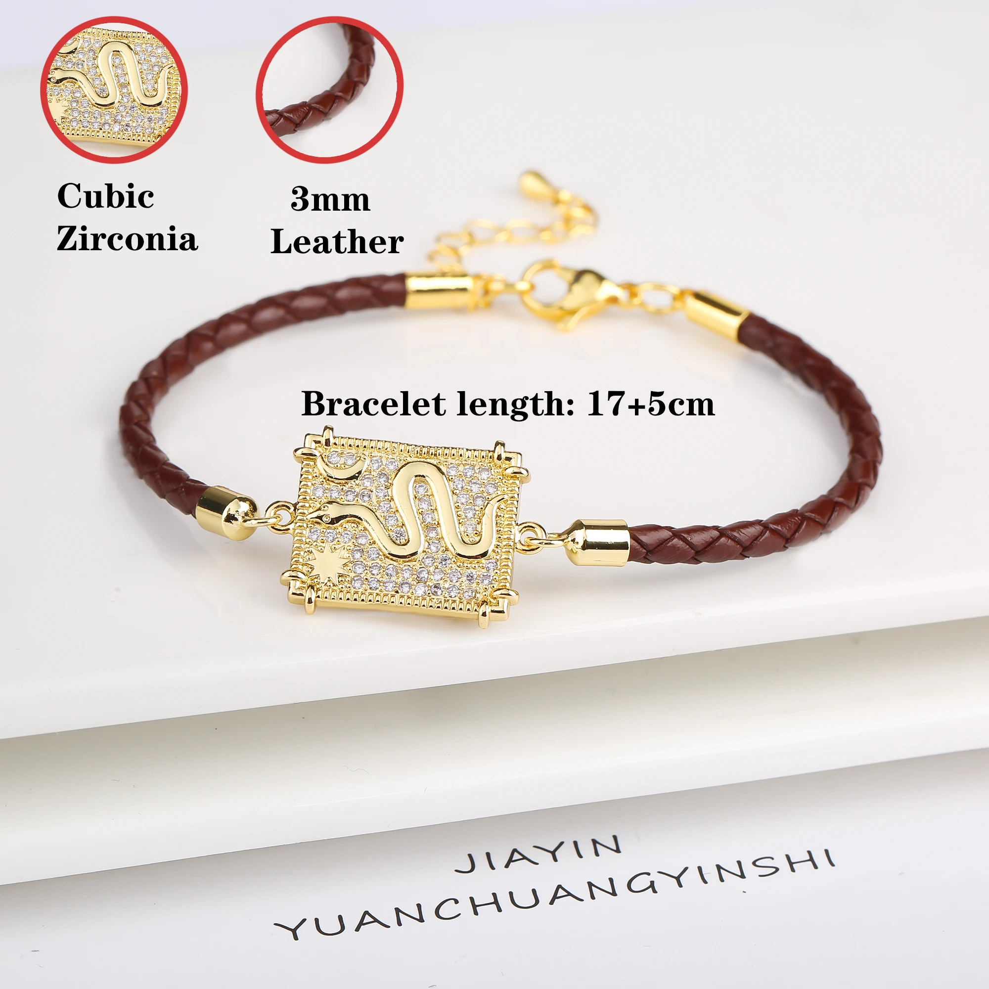 Name: Personalized Square Geometric Star Zirconia Leather Braided Adjustable Bracelet Temperament for Women Party Jewelry Couple Gift