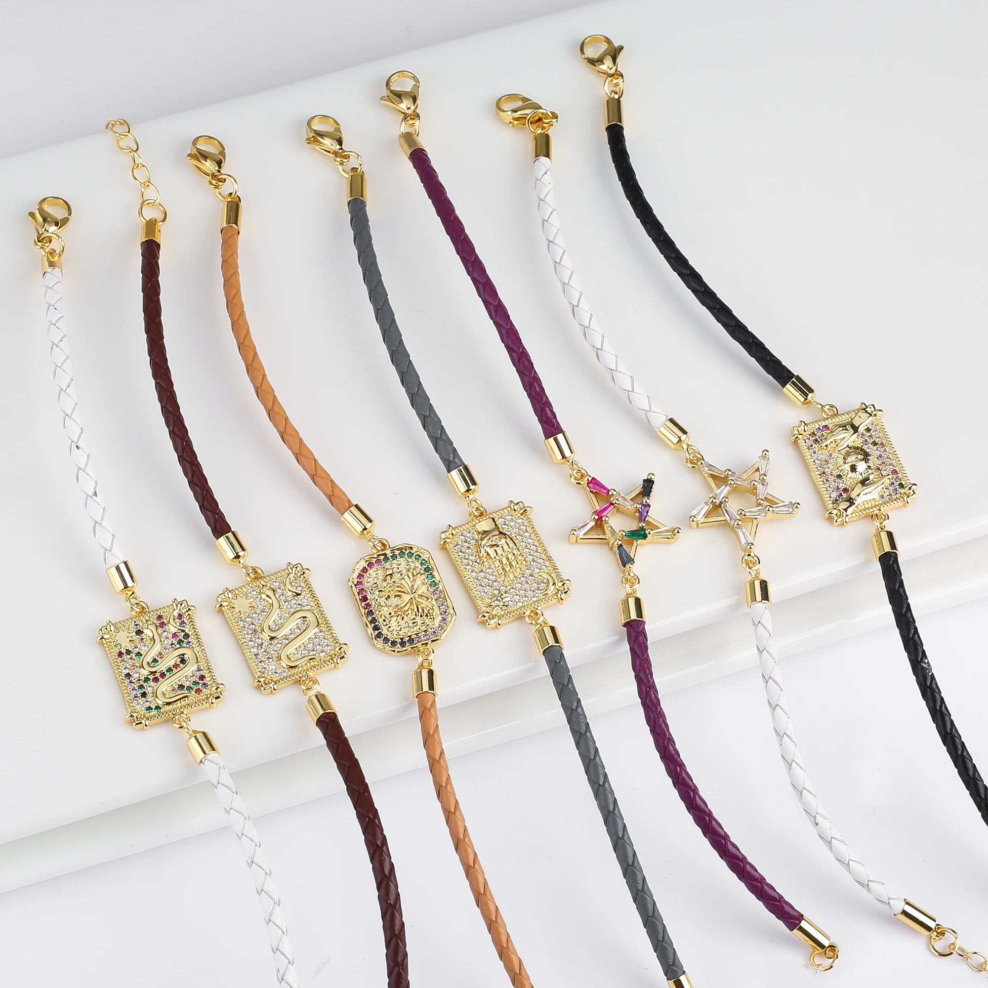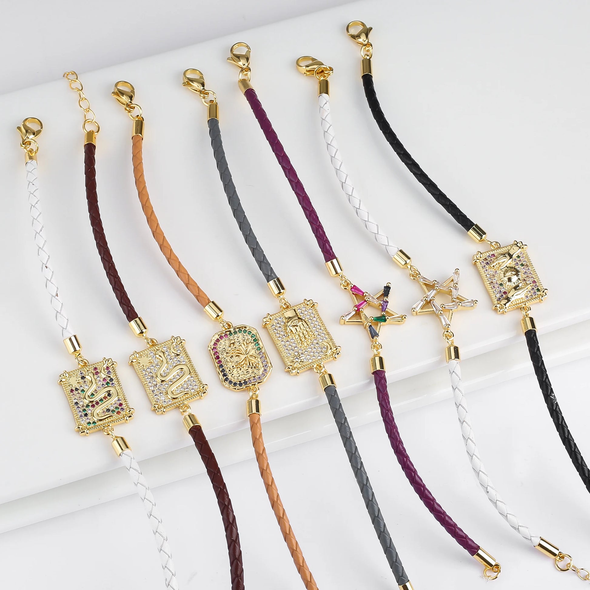 Personalized Square Geometric Star Zirconia Leather Braided Adjustable Bracelet Temperament for Women Party Jewelry Couple Gift