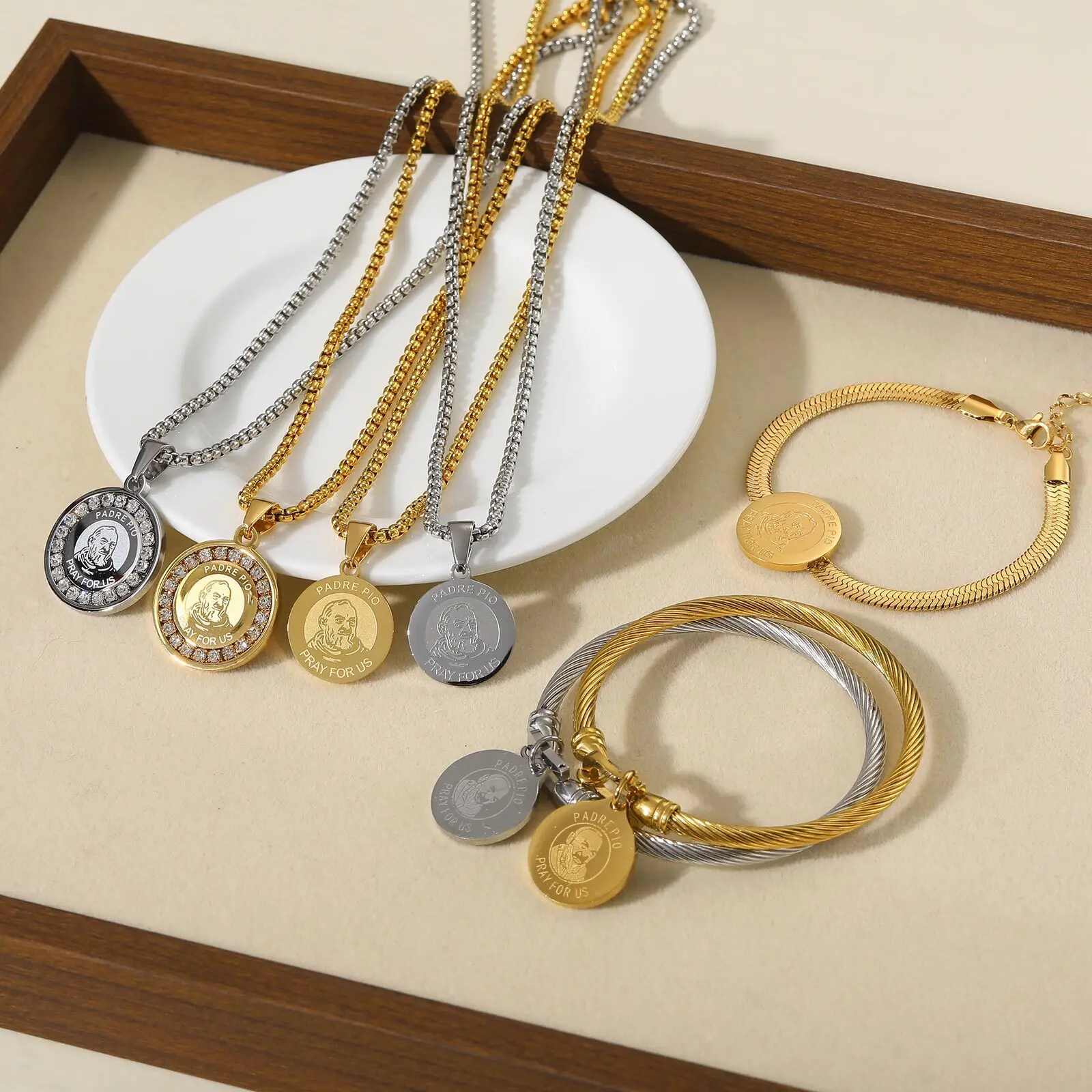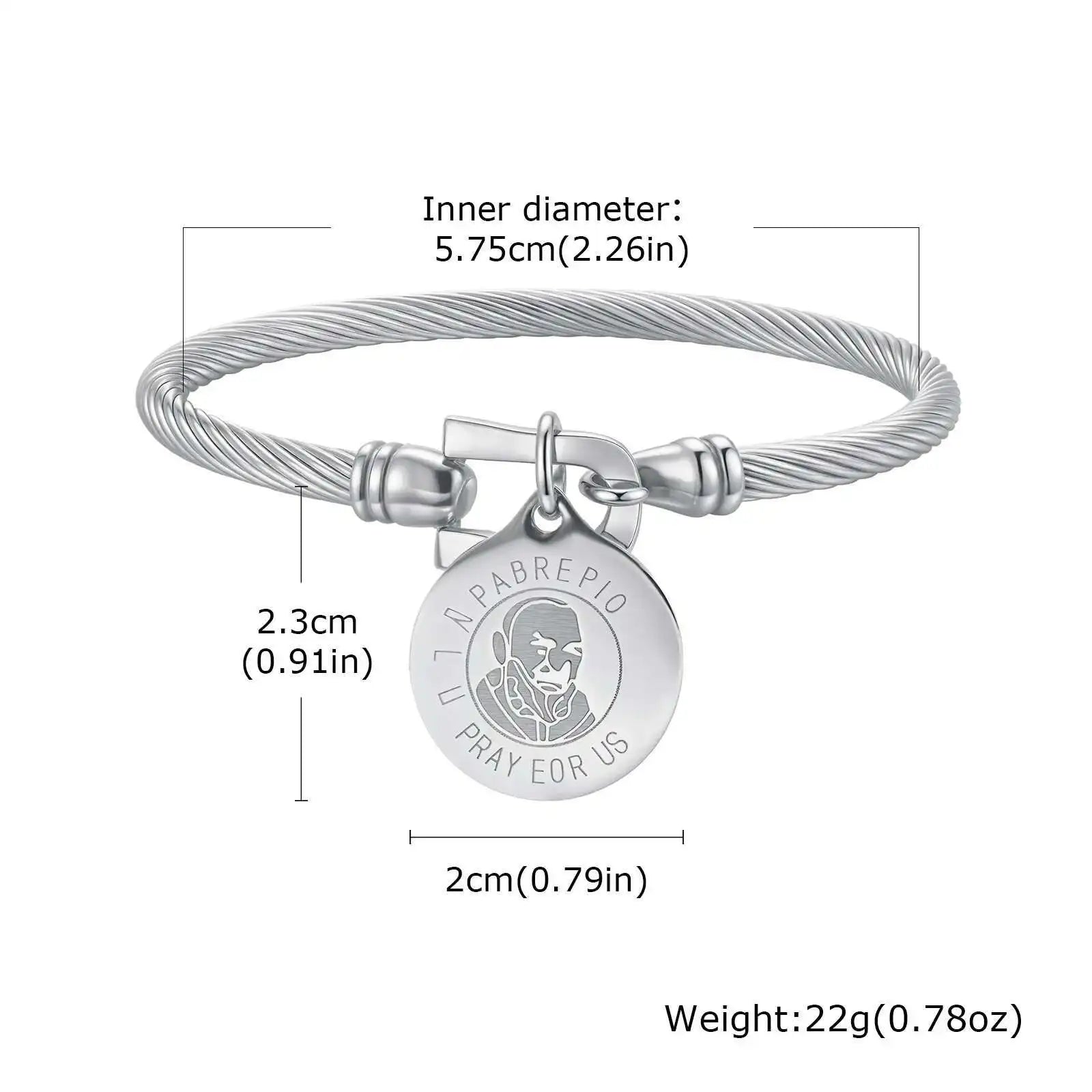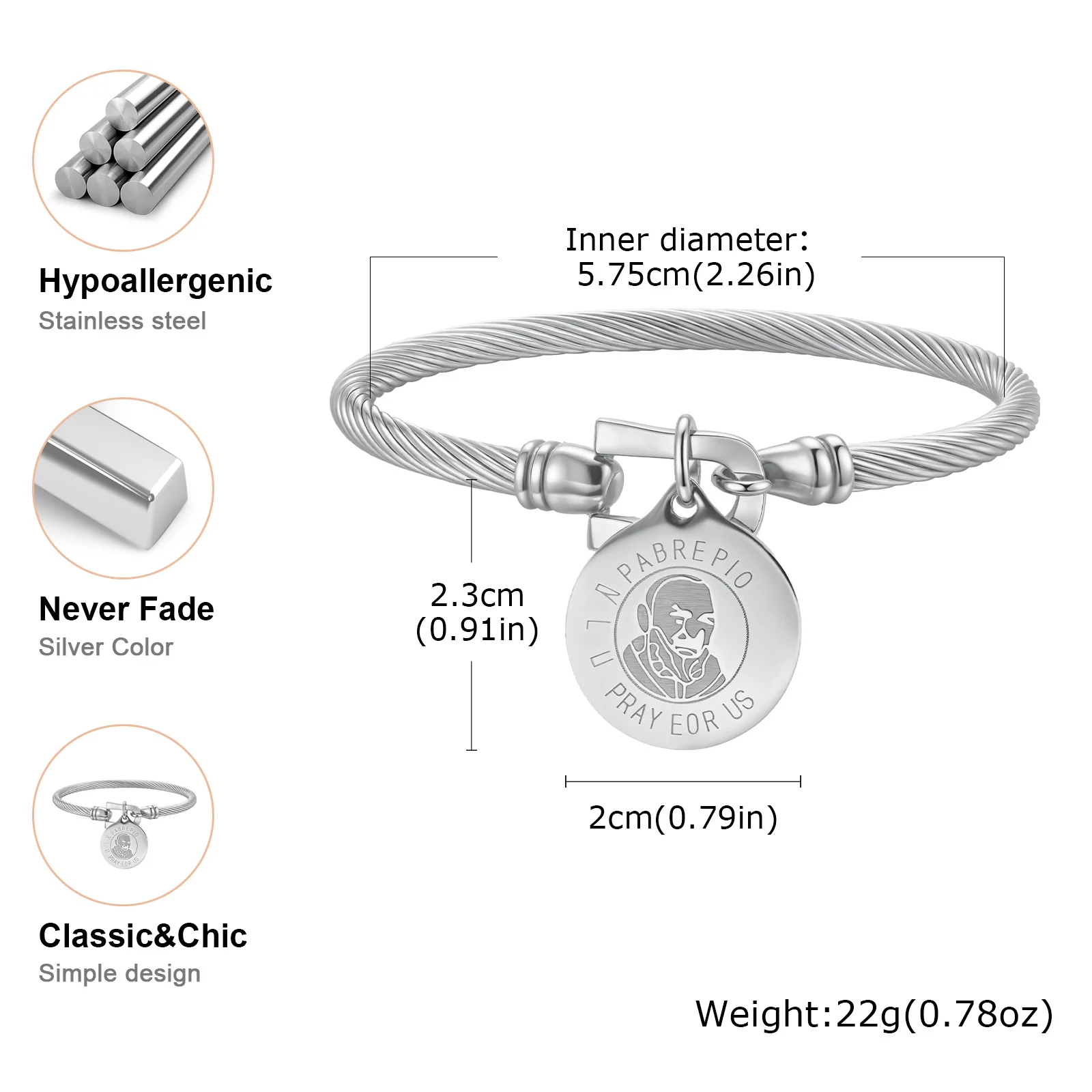 Prjewel Unique Stainless Steel Bracelets For Women Padre Pio Catholic Saint Round Accessory Bangles Religious Jewelry Set Gifts