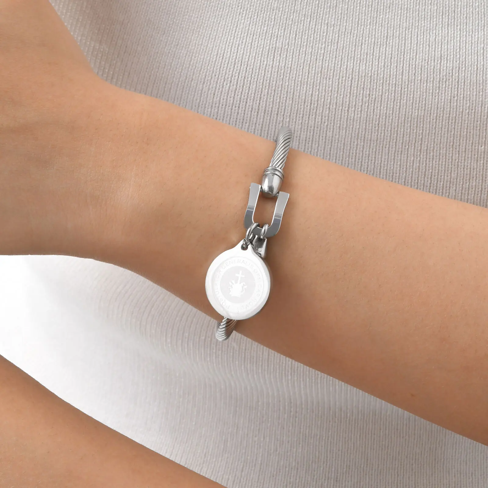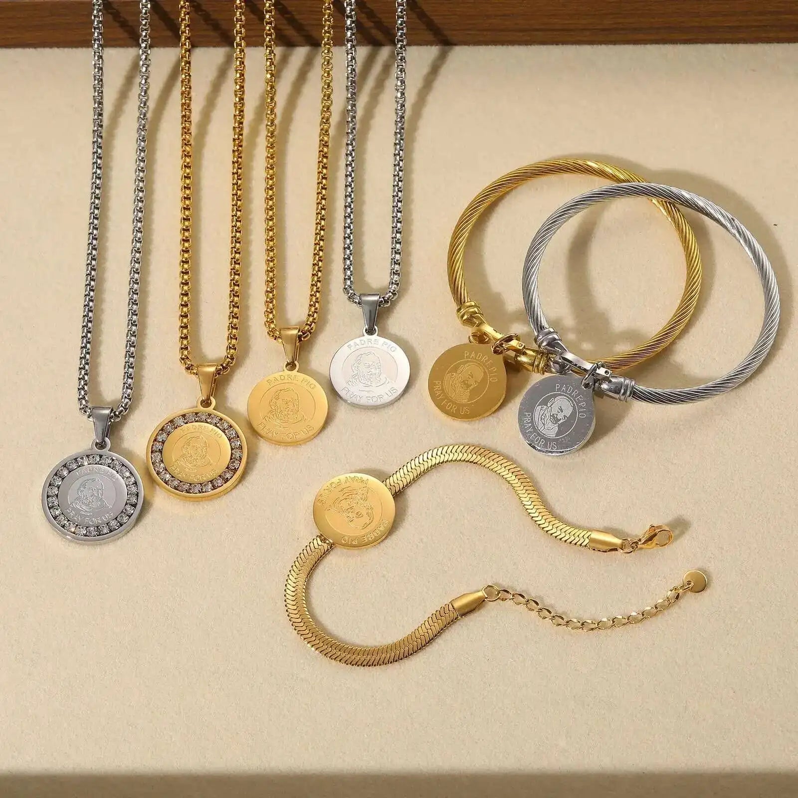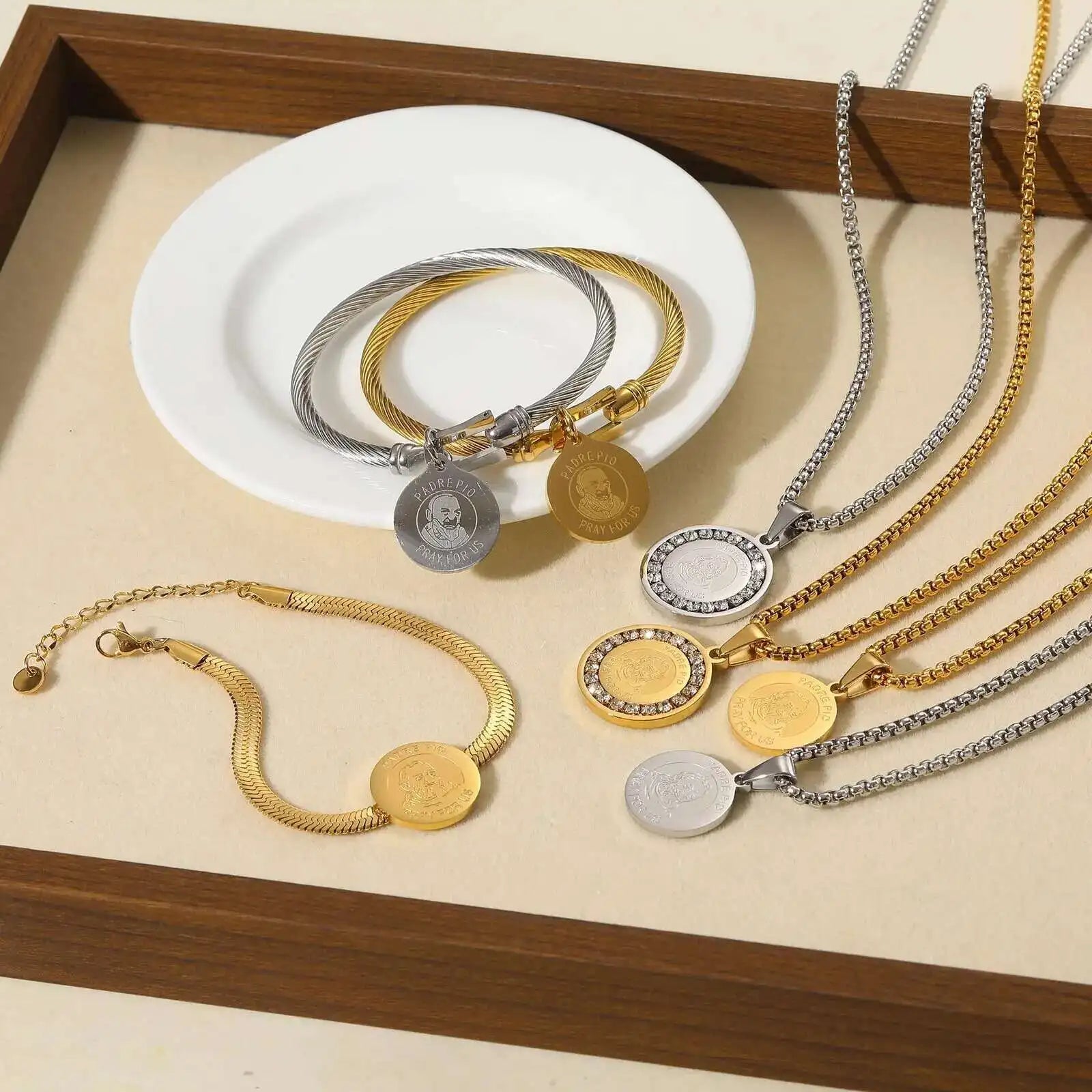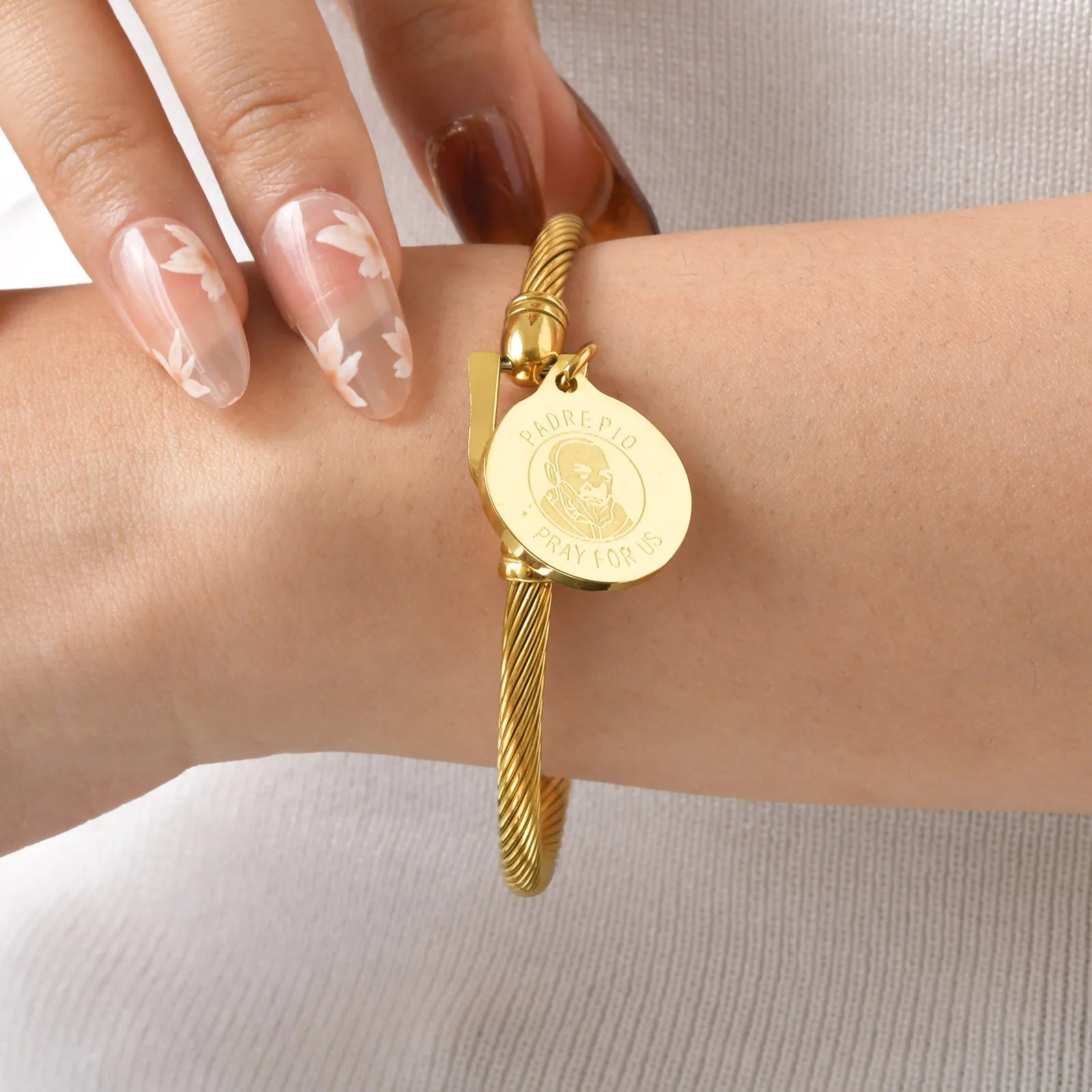 Prjewel Unique Stainless Steel Bracelets For Women Padre Pio Catholic Saint Round Accessory Bangles Religious Jewelry Set Gifts
