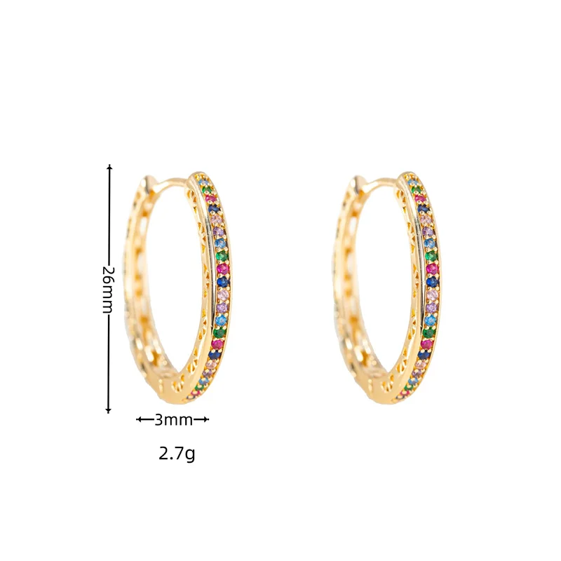 Rainbow Zircon Multicolor Stone Round Hoop Earrings For Women Gold Color Ear Buckle Daily Wedding Party Jewelry Mothers Day Gift