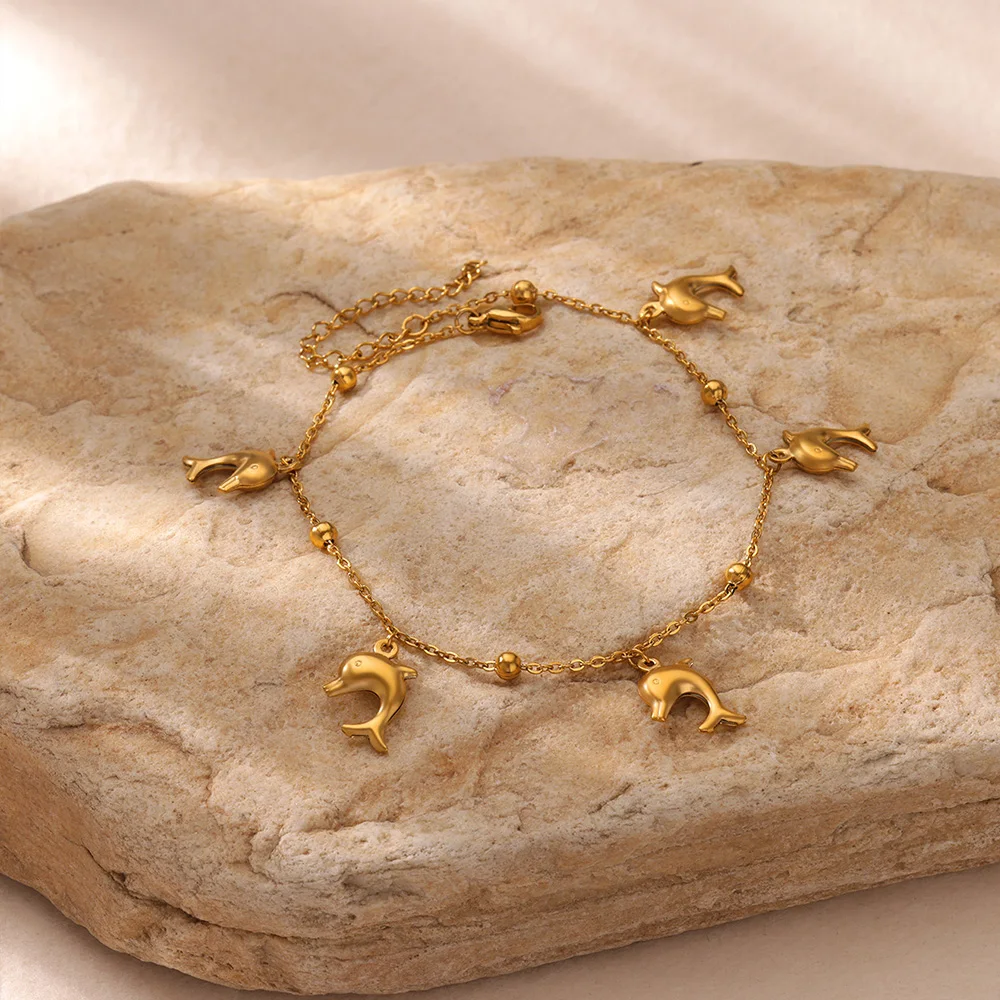 Starfish Dolphin Pendant Anklet Bracelet for Women Stainless Steel Gold Color Anklets Boho Summer Beach Jewelry Foot Accessories