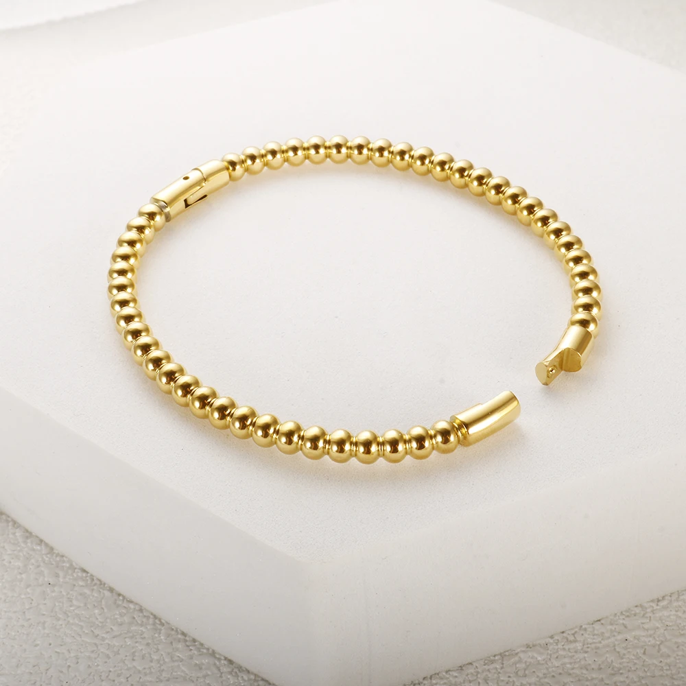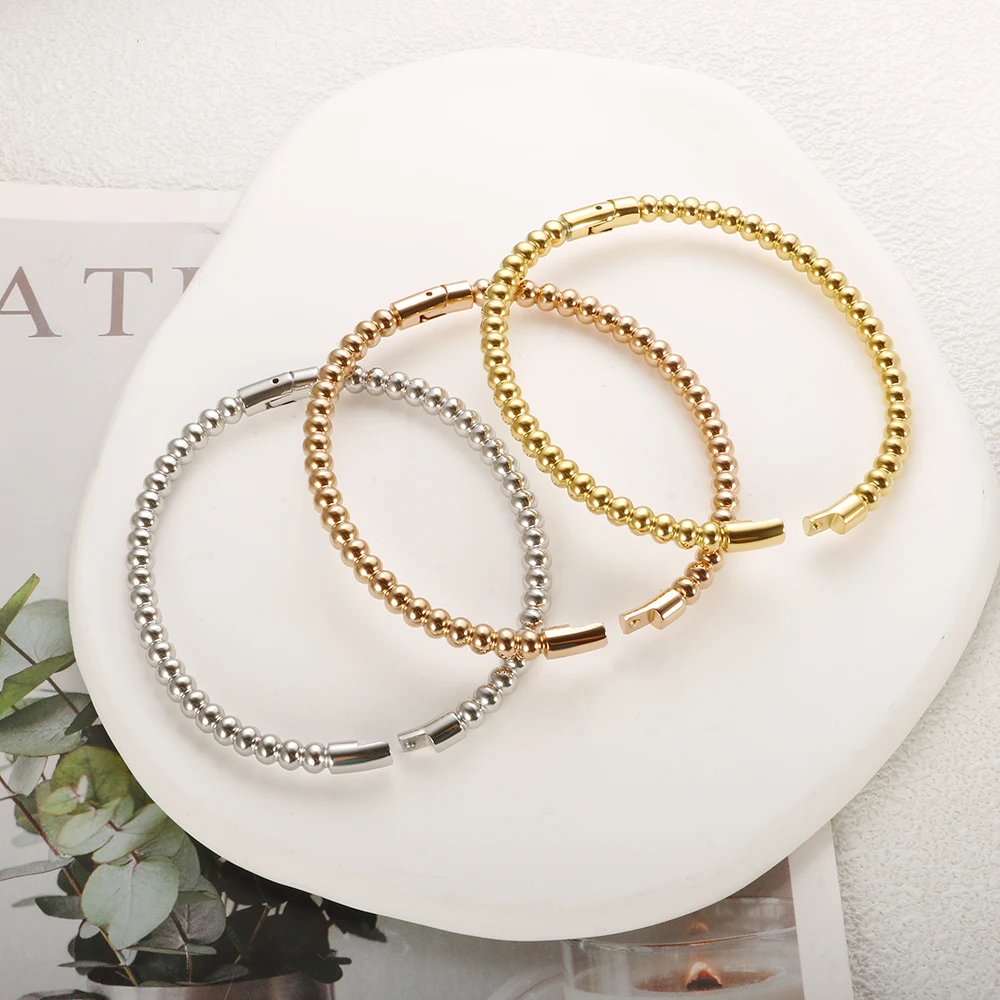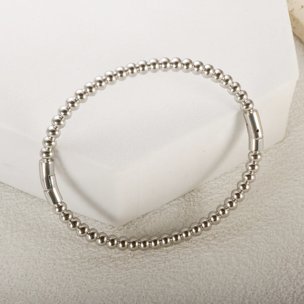 Trendy Round Ball Beaded Bracelets Bangles High Quality Stainless Steel Twist Balls Dots Bead Bangle for Women Jewelry Wholesale