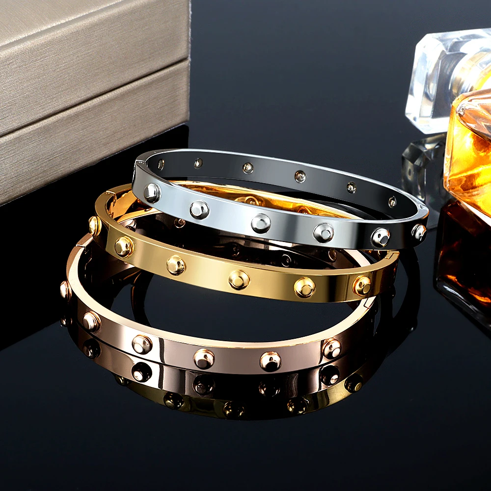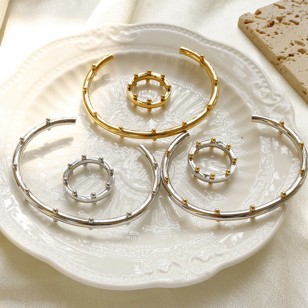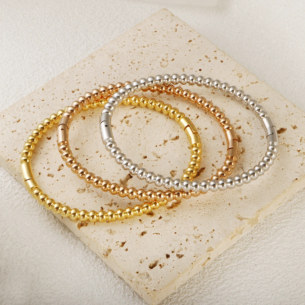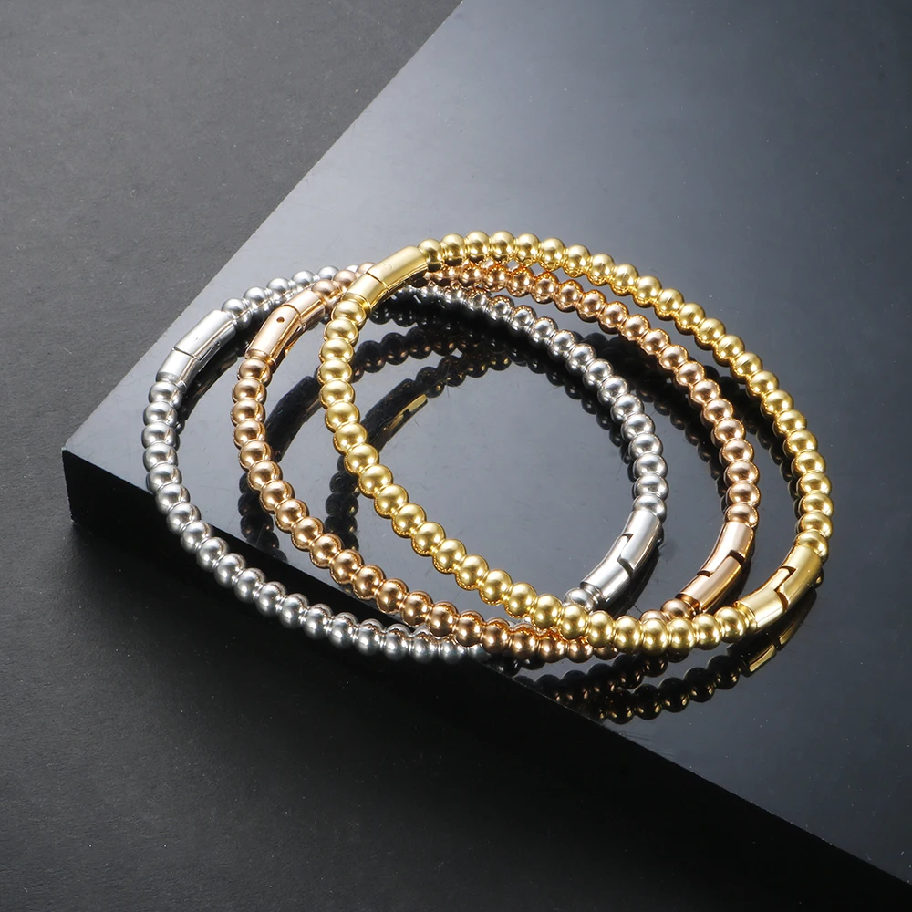 Trendy Round Ball Beaded Bracelets Bangles High Quality Stainless Steel Twist Balls Dots Bead Bangle for Women Jewelry Wholesale