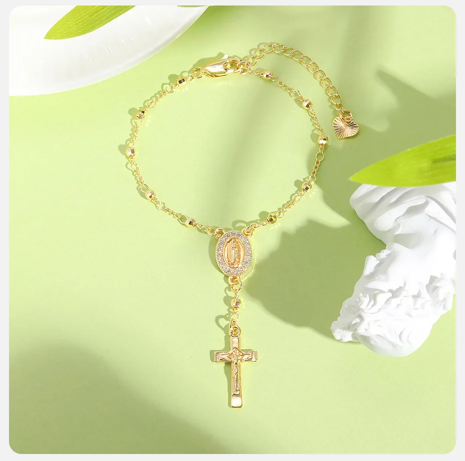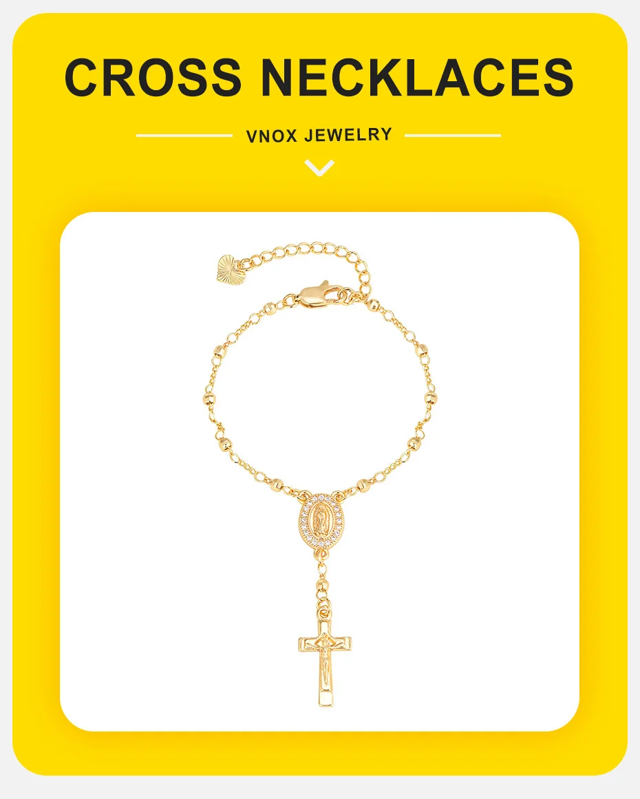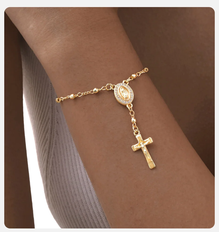 Vnox Virgin Mary Bracelets Necklaces For Women Men,Delicate Jesus Cross Pendent,Christian Catholic Hand Neck Jewelry Set Gifts