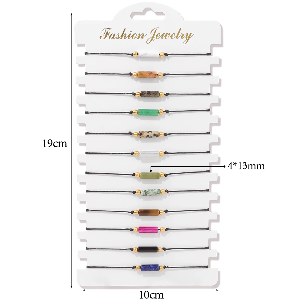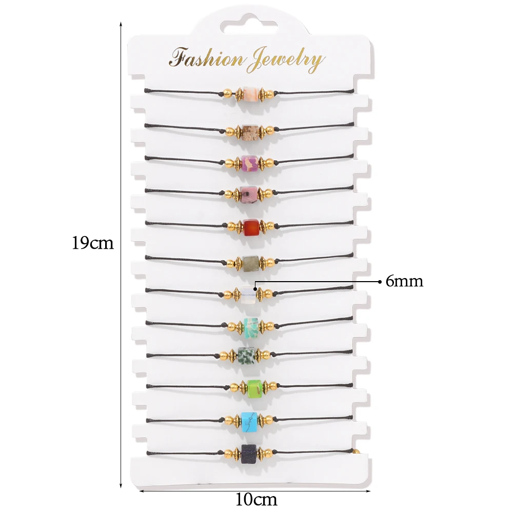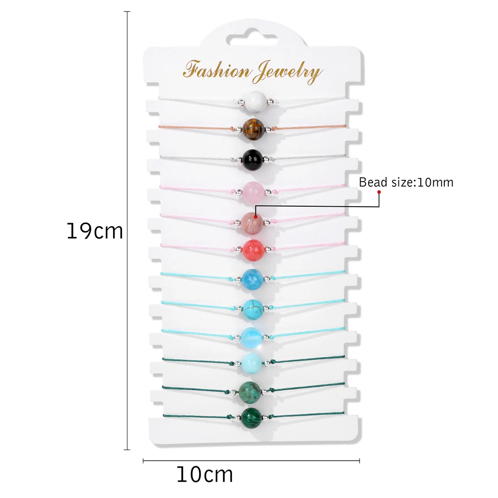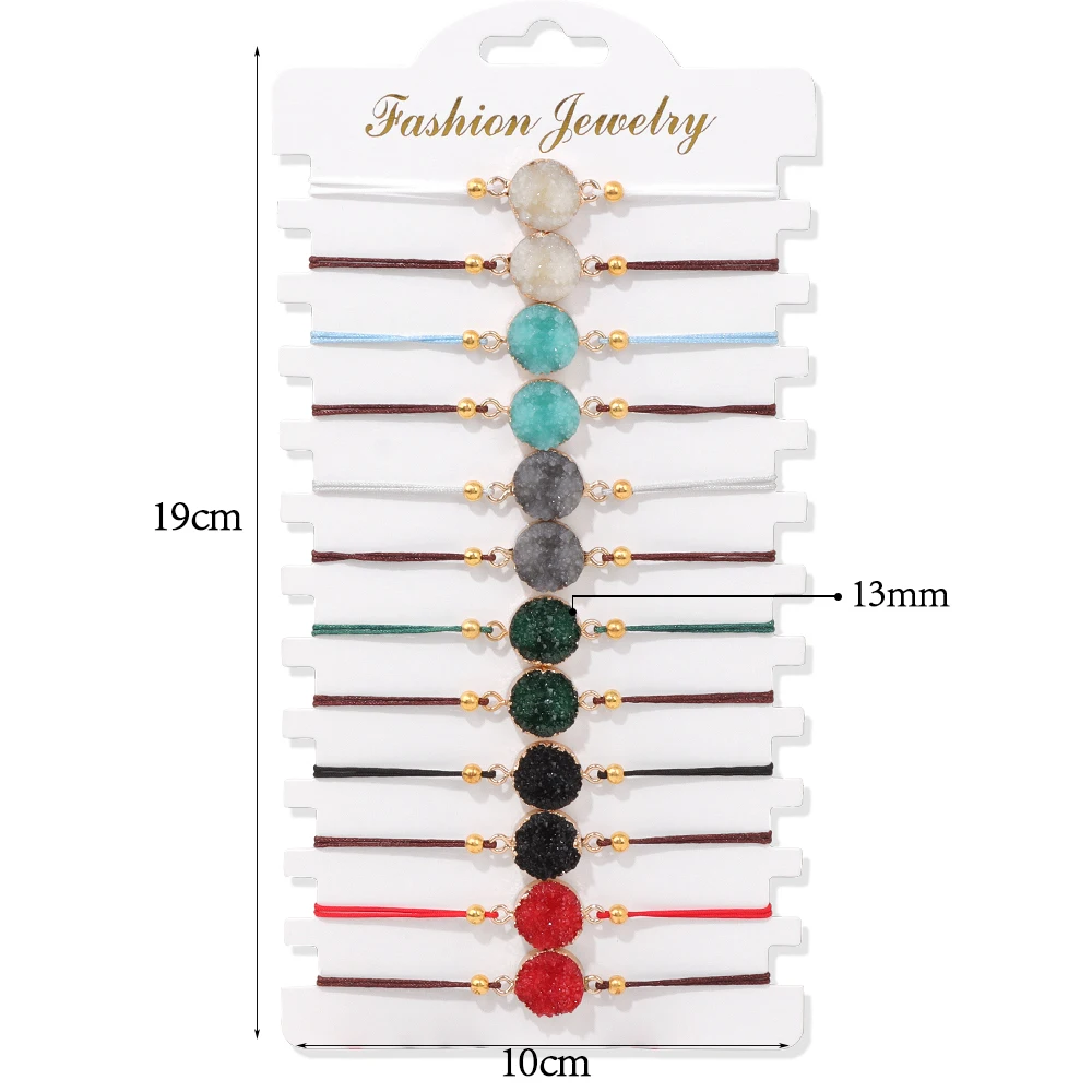 Wholesale 12Pcs/Set Colorful Natural Stone Bracelets Adjustable Rope Braided Bracelet Handmade Bohemia Bracelets with Cards