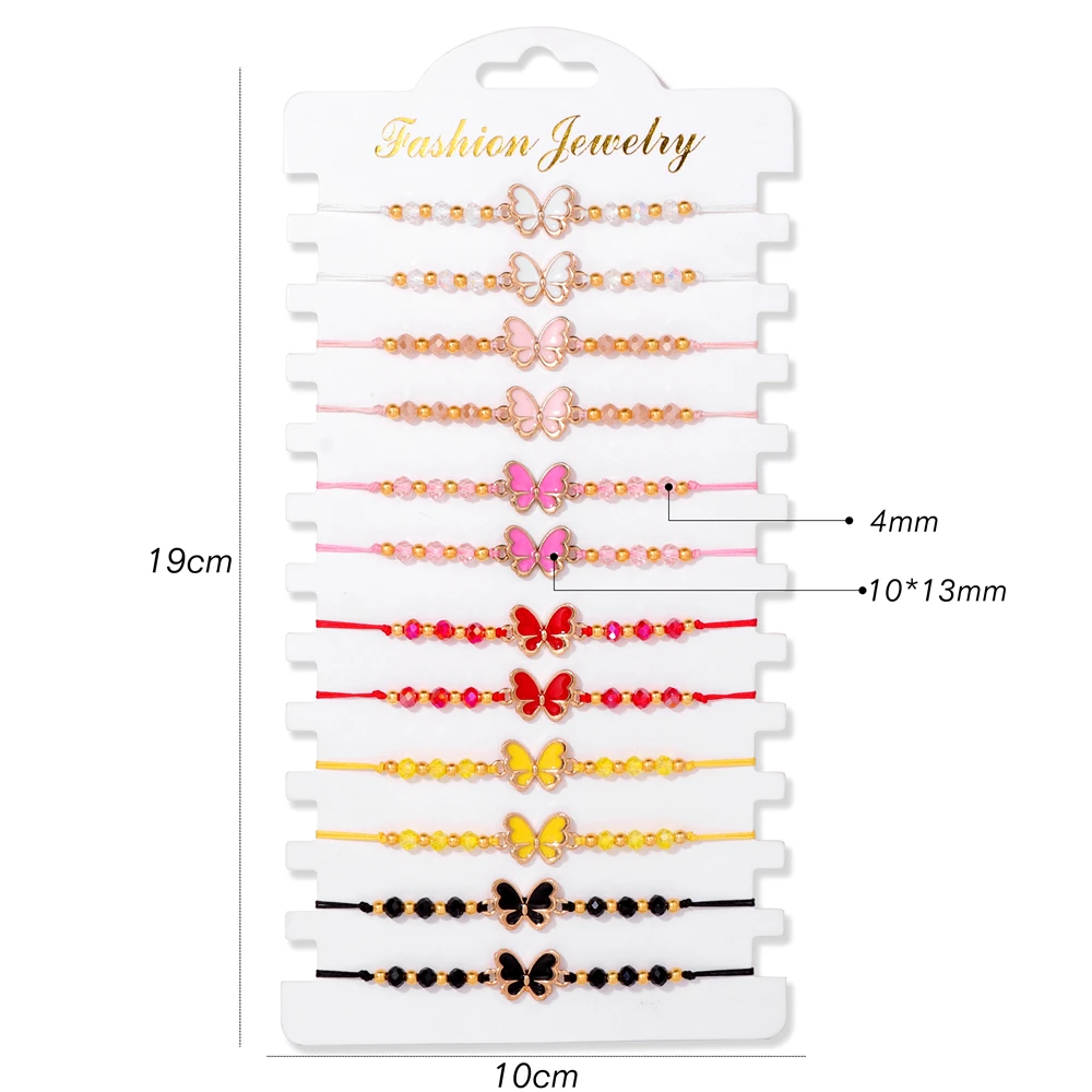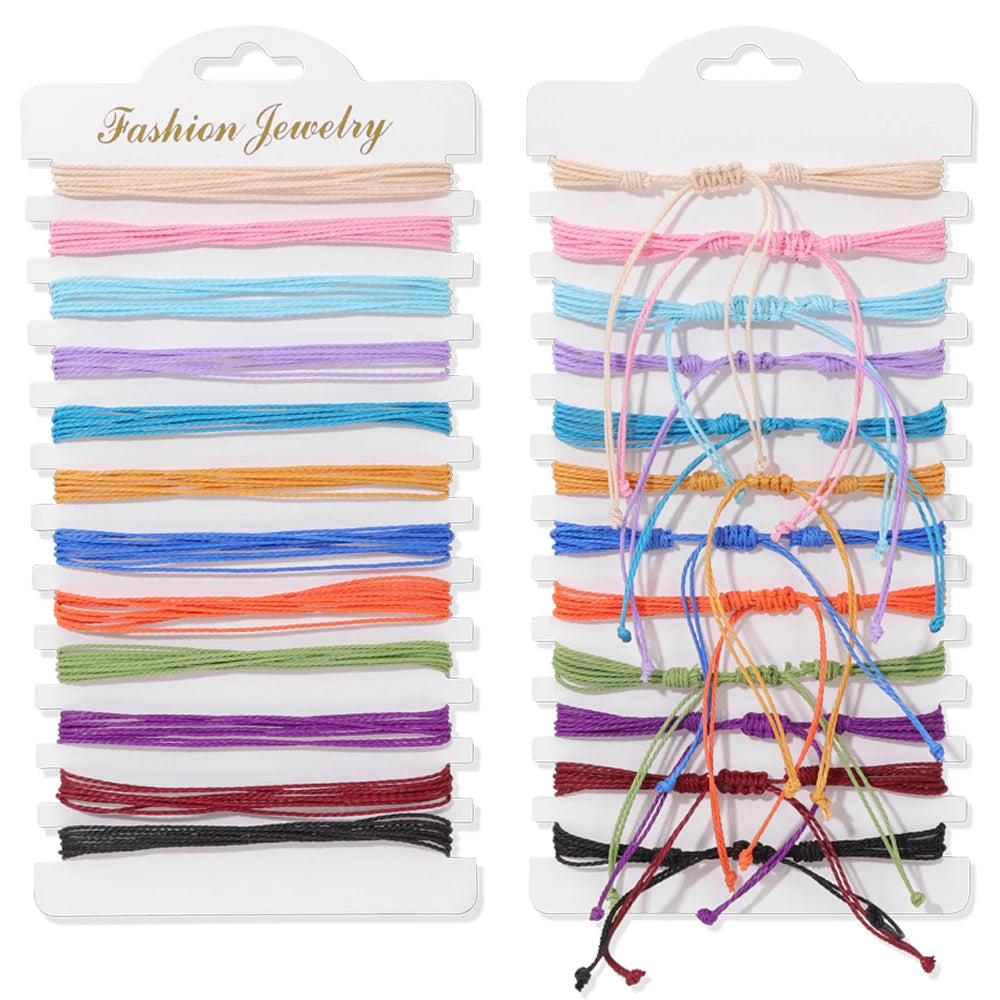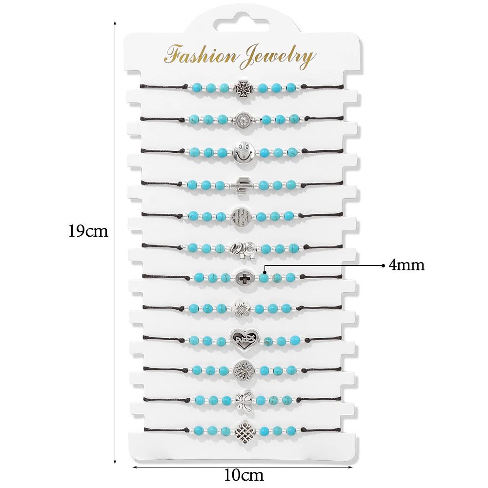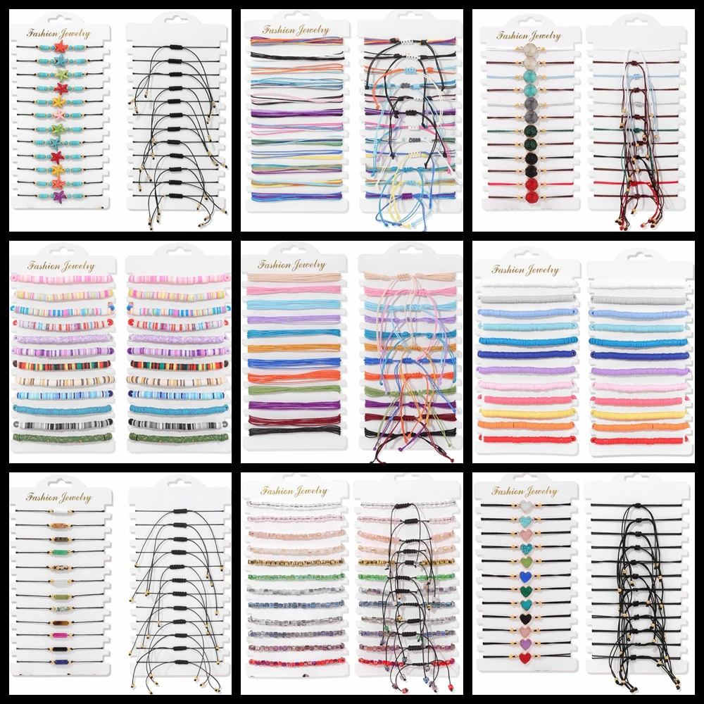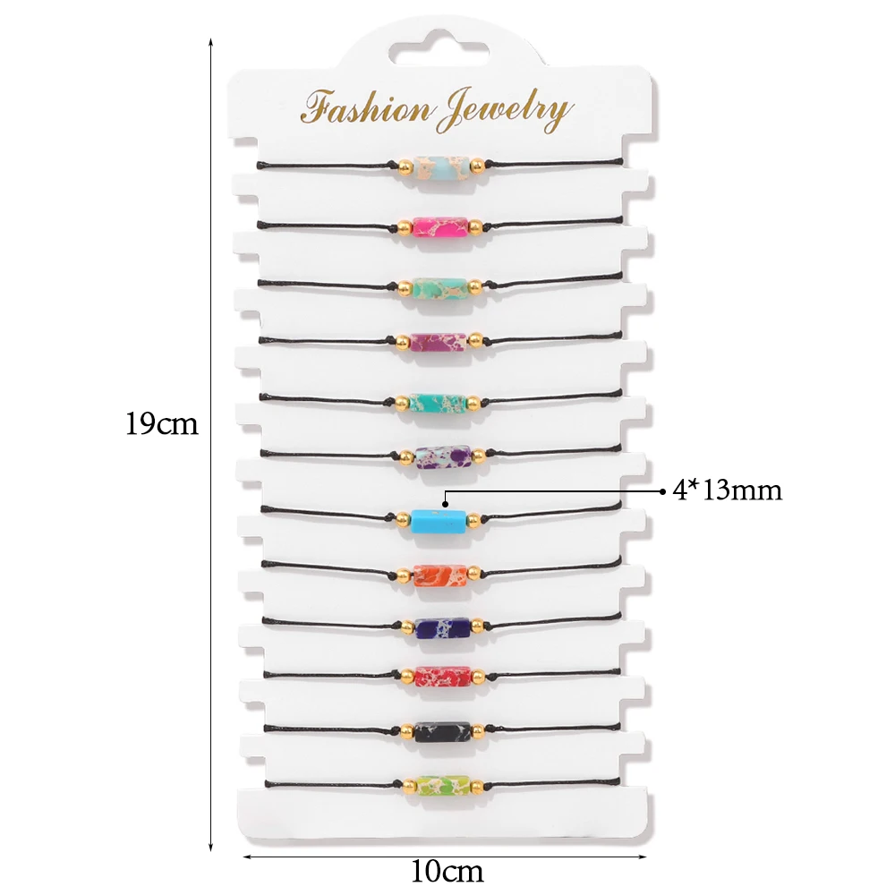 Wholesale 12Pcs/Set Colorful Natural Stone Bracelets Adjustable Rope Braided Bracelet Handmade Bohemia Bracelets with Cards